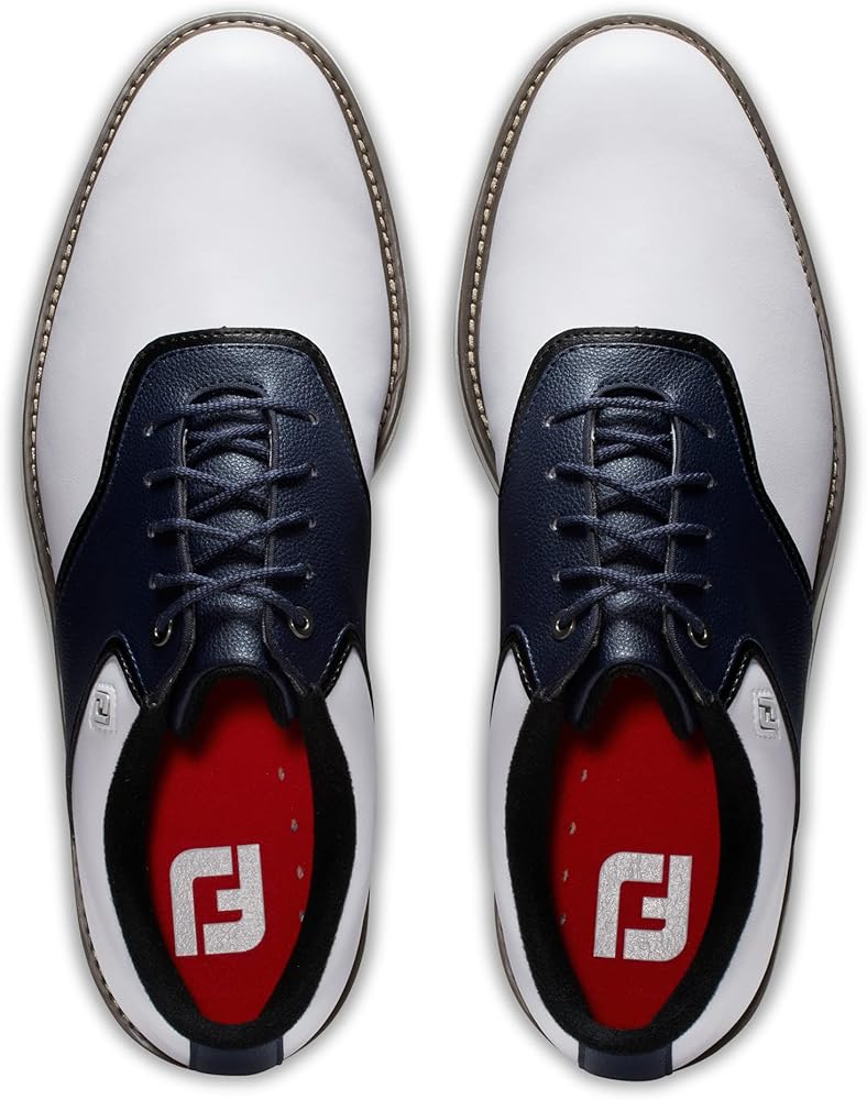 تعد اف جيه اوريجينالز خيارًا مريحًا وأنيقًا ومقاومًا للماء للاستمتاع على مدار العام في ملعب الجولف. يتميز بجزء علوي من الجلد يوفر تهوية وراحة رائعة، ونعل خارجي خفيف الوزن من مادة ايفا لتعزيز المتانة و6 مسامير بارزة لتحقيق أقصى قدر من الثبات.