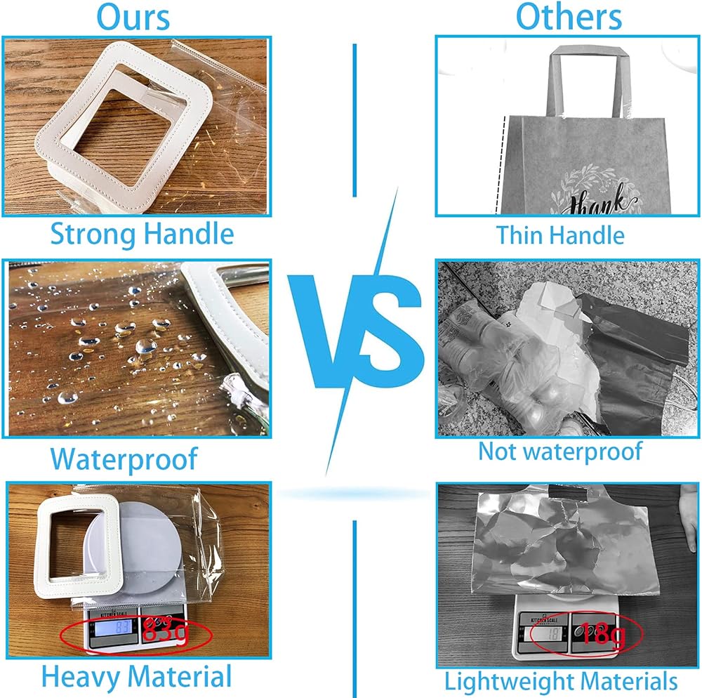 طبقات واضحة ومعززة: حقائب هدايا الزفاف مصنوعة من مادة PVC الشفافة مما يجعل من السهل تحديد أغراضك دون الحاجة إلى البحث. مادة مقاومة للماء يمكنها حماية هديتك أو منتجاتك بشكل أفضل من الغبار والماء، ويمكن مسح أي أوساخ على السطح الأملس بسهولة.