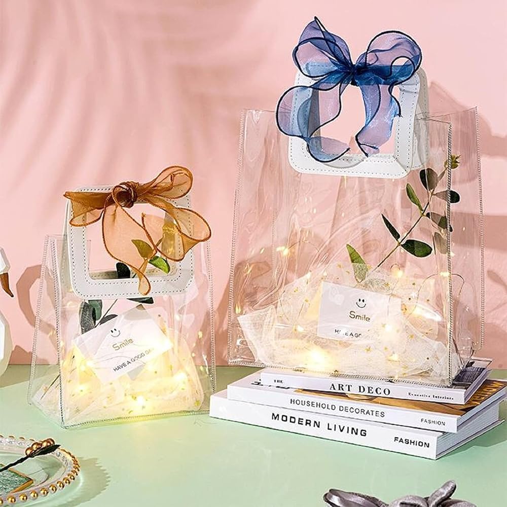 استخدام متعدد الأغراض: استخدم حقائب الهدايا الشفافة عالية الجودة هذه كحقائب ترحيب بالزفاف، وحقائب تسوق فاخرة للبضائع التي تحمل شعار عملك، وتستخدم كحقيبة ملعب شفافة، وتحميل ملفات تعريف الارتباط والحلوى من أجل حقائب تخزين ممتعة وبأسعار معقولة للحفلات وغيرها الكثير.