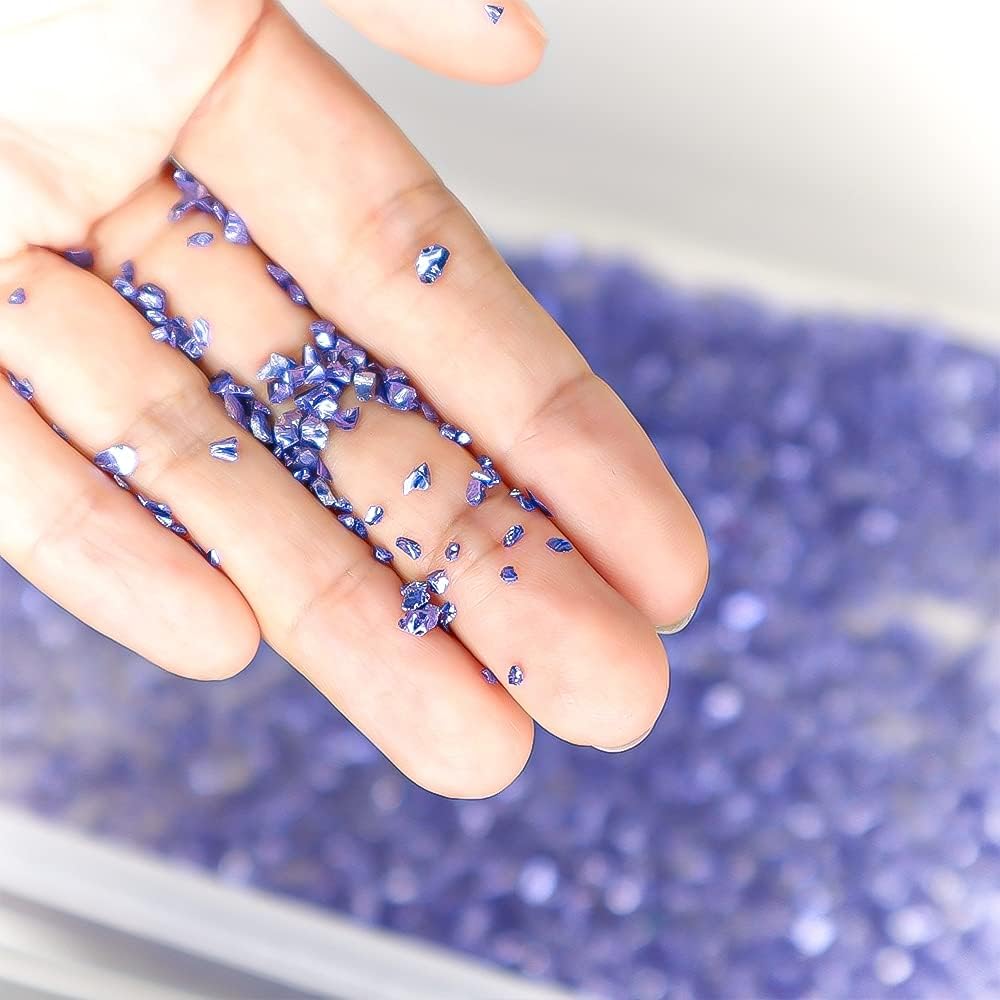 VARIETY OF USAGE : The broken glass pieces for crafts are creative art DIY items. Crushed craft glass is perfect for DIY resin, filling epoxy molds. Chunky glitter is used for greeting card, nail art, jewelry making, keychain, geode pictures, mosaic art, phone case or etc.