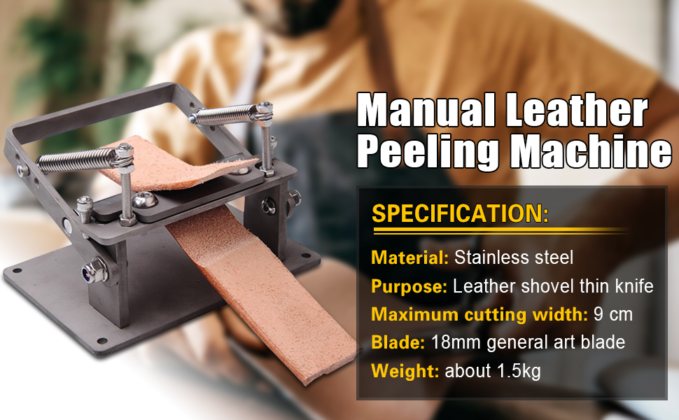 هذه الآلة تعمل يدويًا بالكامل، تحتاج إلى سحب مادة الجلد التي يمكن تقشيرها، ومناسبة للجلد المدبوغ بالجلد النباتي.