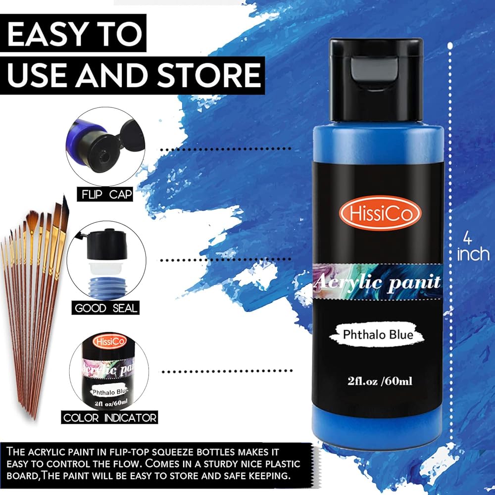 مجموعة طلاء الأكريليك من هيسكو بصبغة غنية وكريمية وغير سامة وآمنة للبالغين والمراهقين والأطفال وقت الرسم الإبداعي.