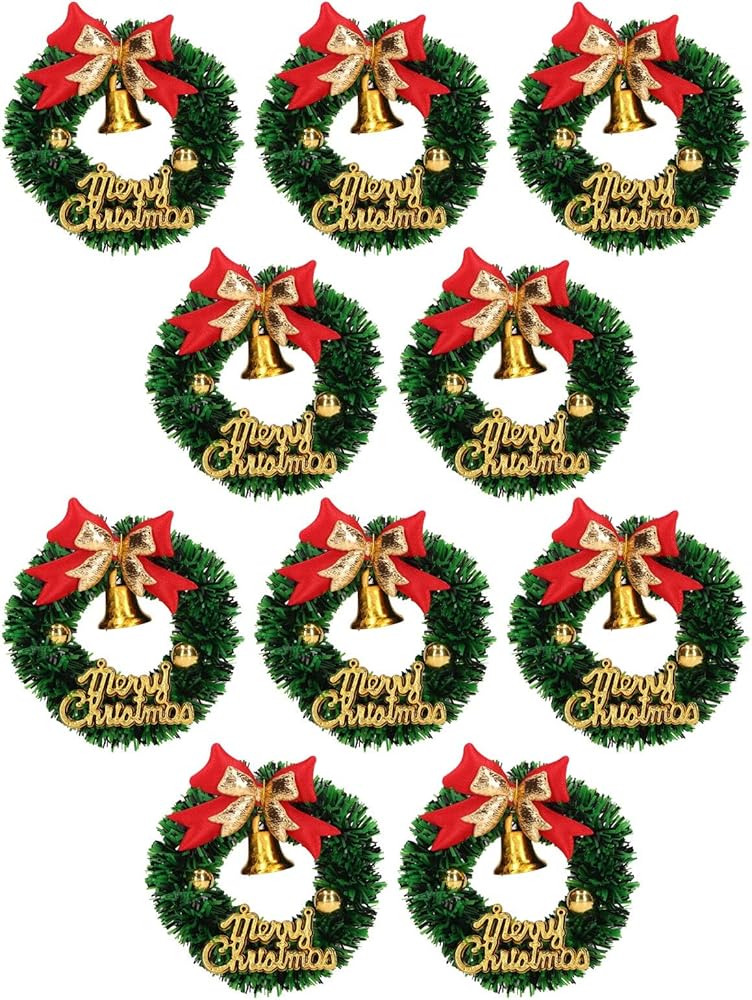 • DELICATE SHAPE: These miniature Christmas wreaths have overall green design and are decorated with berries, bow and bell, delicate and cute.
