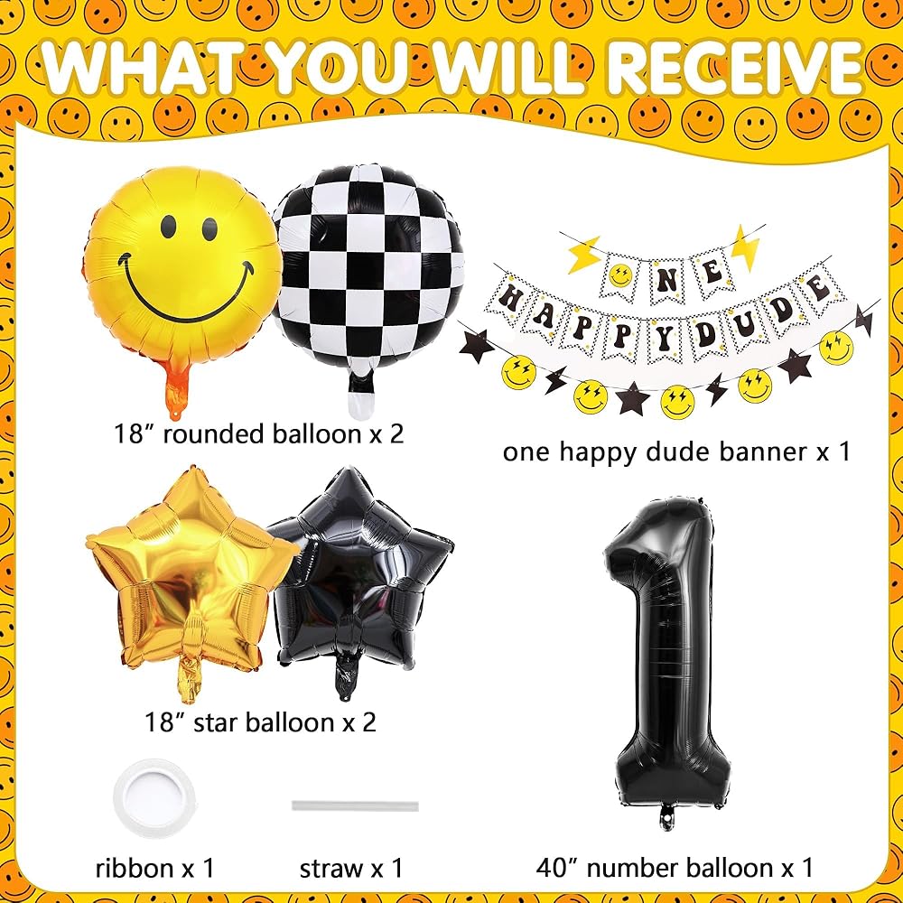 جودة ممتازة: بالونات هابي دود واحدة مصنوعة من رقائق معدنية أكثر سمكًا، آمنة ومتينة، يتم تطبيق طلاء ملون موثوق ولا طعم له. لافتة واحدة بعبارة Happy dude مصنوعة من ورق بطاقات عالي الجودة بطباعة زاهية. يمكن استخدامها مرارًا وتكرارًا وكإضافة مثالية لحفلة عيد الميلاد الأول للأولاد