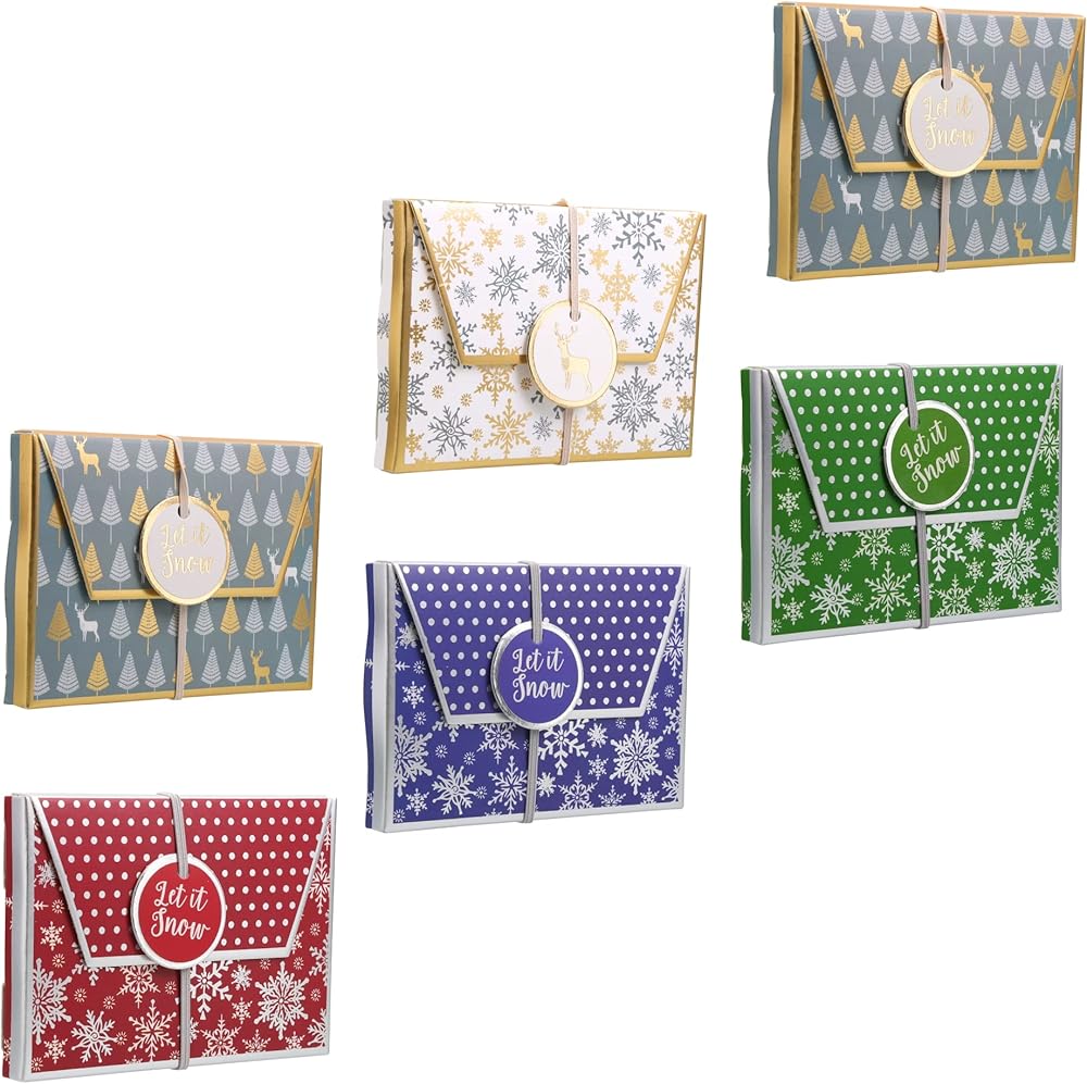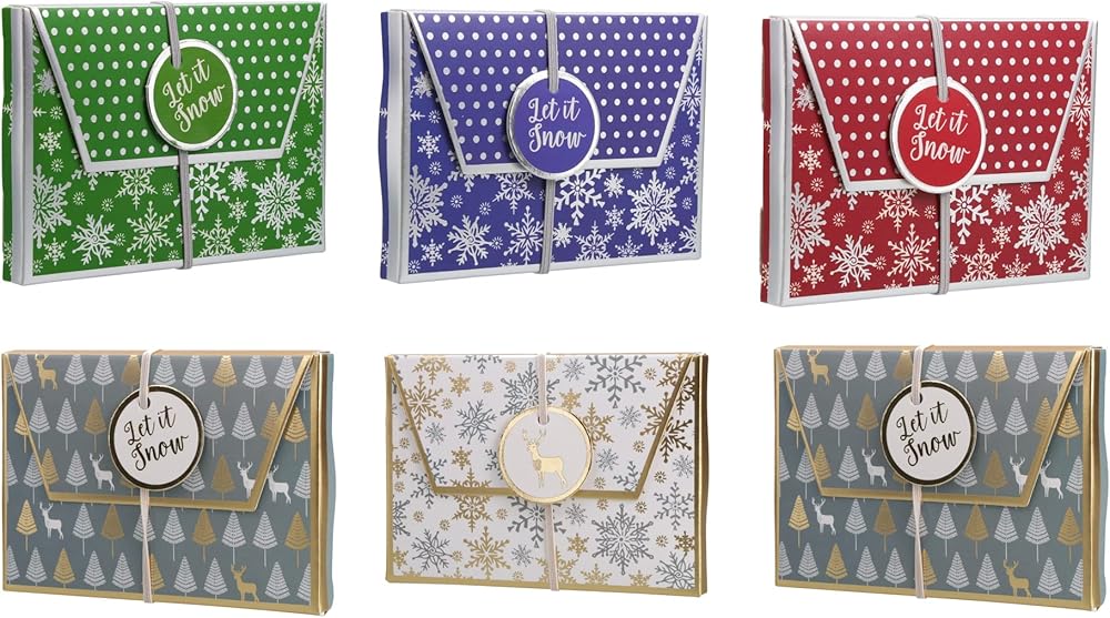 مجموعة من 6 صناديق حامل بطاقات هدايا أنيقة مصممة للعطلات مع ختم ساخن من الرقائق المعدنية
