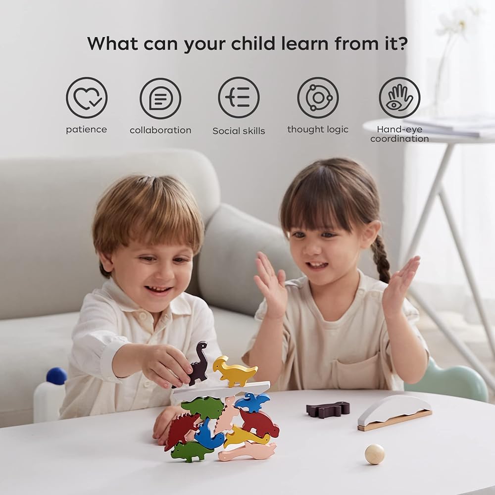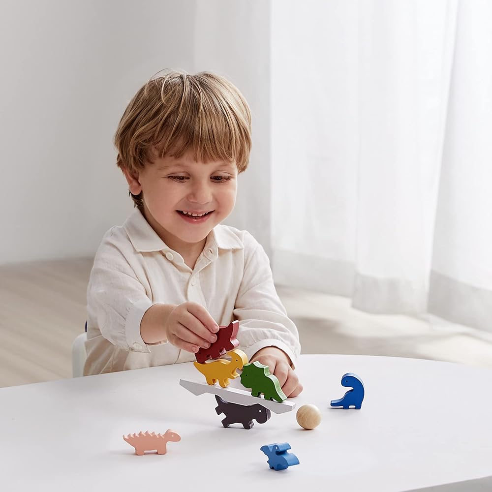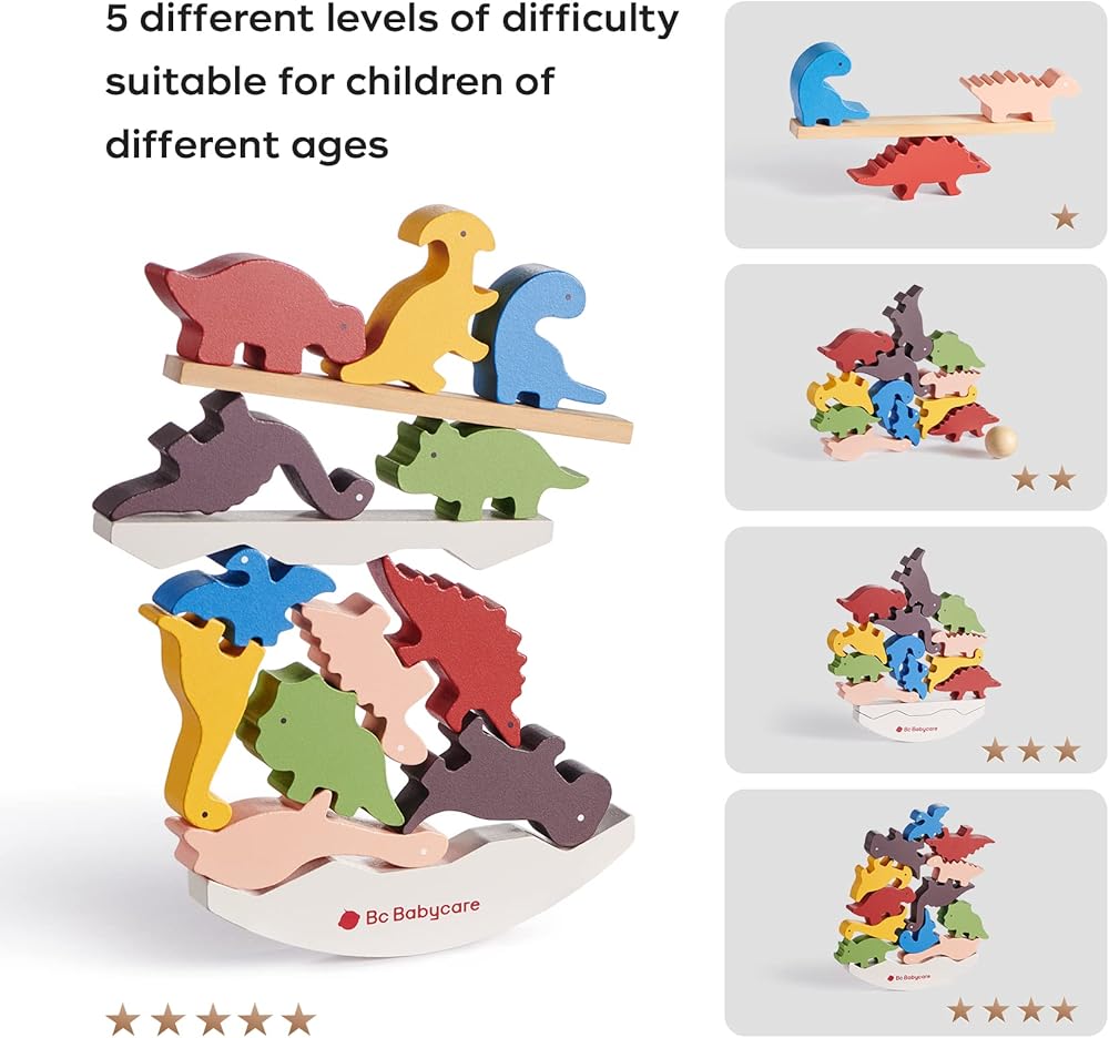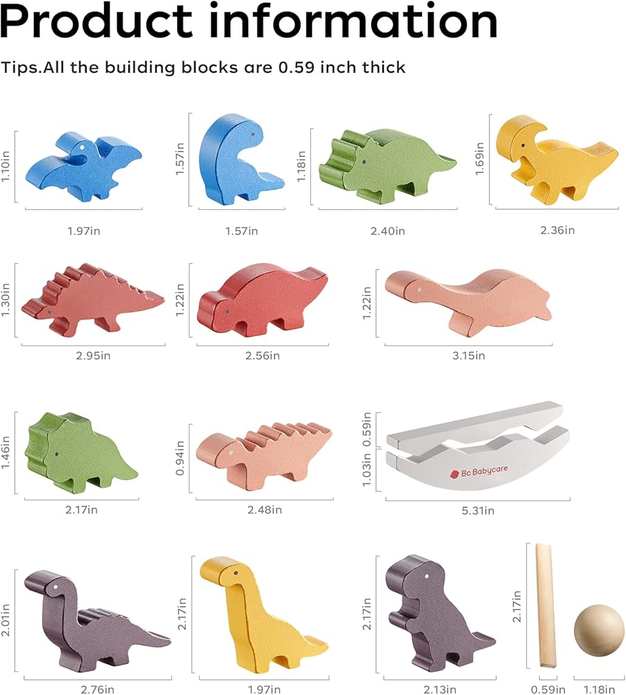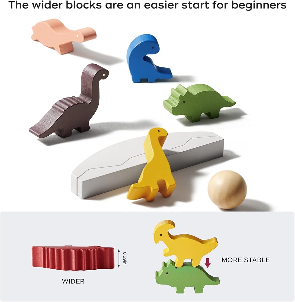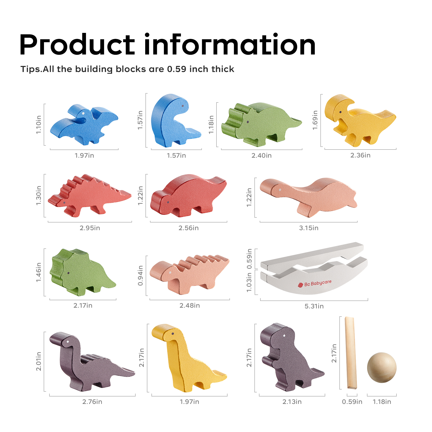 مكعبات بناء لطيفة على شكل ديناصور: مكعبات بناء ديناصور للأولاد والبنات، تحتوي العبوة على 12 قطعة بناء ملونة للديناصور + كرة خشبية ناعمة + 1 شعاع توازن + 1 قاعدة خشبية متوازنة قابلة للفصل. تتضمن مجموعة الألعاب الخشبية 5 طرق تثبيت لمساعدة المبتدئين على تعلم مهارات التجميع وتحدي مستويات أعلى من الصعوبة. جودة ممتازة بسعر جيد لجميع الأعمار. أفضل ألعاب خشبية هدية للأطفال فوق سن 3 سنوات فأكثر.
