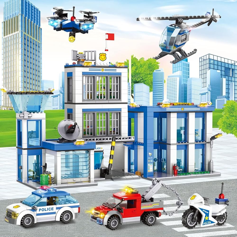 مجموعات بناء مركز شرطة المدينة: تتميز مجموعة ألعاب سجن شرطة المدينة بهيكل من 3 مستويات مع مهبط للطائرات المروحية وغرفة قيادة وتحكم ورادار وصفارة إنذار وأبراج استكشافية ومرآب. امنح ساعات من متعة مغامرة الشرطة المثيرة لمحبي شرطة المدينة. انضم إلى مطاردة الأشرار في المدينة وكن بطلاً صغيرًا صالحًا!