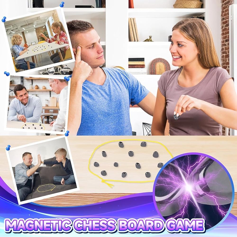 • لعبة شطرنج مغناطيسية - لعبة لوحية مغناطيسية متعددة اللاعبين، لعبة مغناطيسية على سطح الطاولة مع أخدود/حبل إسفنجي، شطرنج معركة مغناطيسية محمولة مع حقيبة تخزين