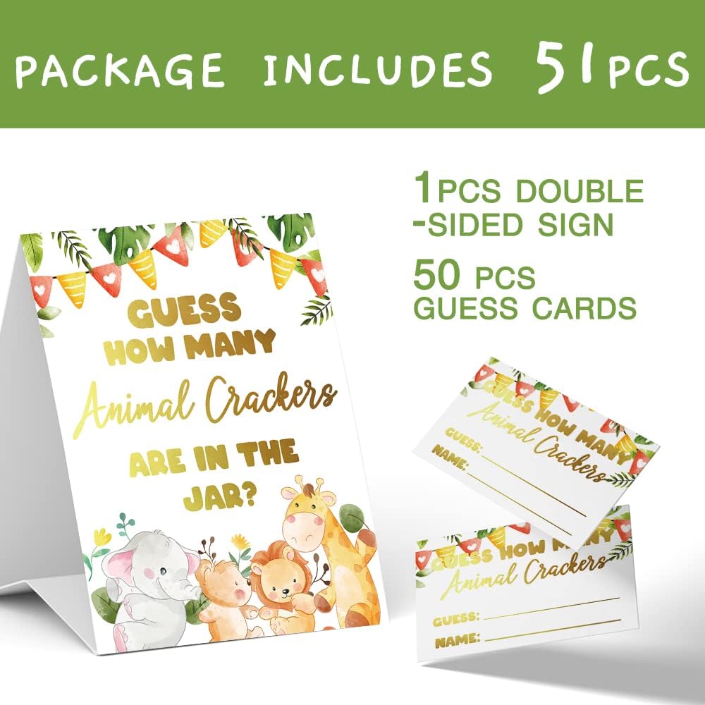 حيوانات الغابة الجميلة تخمين عدد ألعاب البسكويت للبسكويت ، والجنسين ، (علامة واحدة و 50 بطاقة تخمين) ، زخرفة استحمام الطفل ، لعبة تخمين استحمام الطفل - DLM322