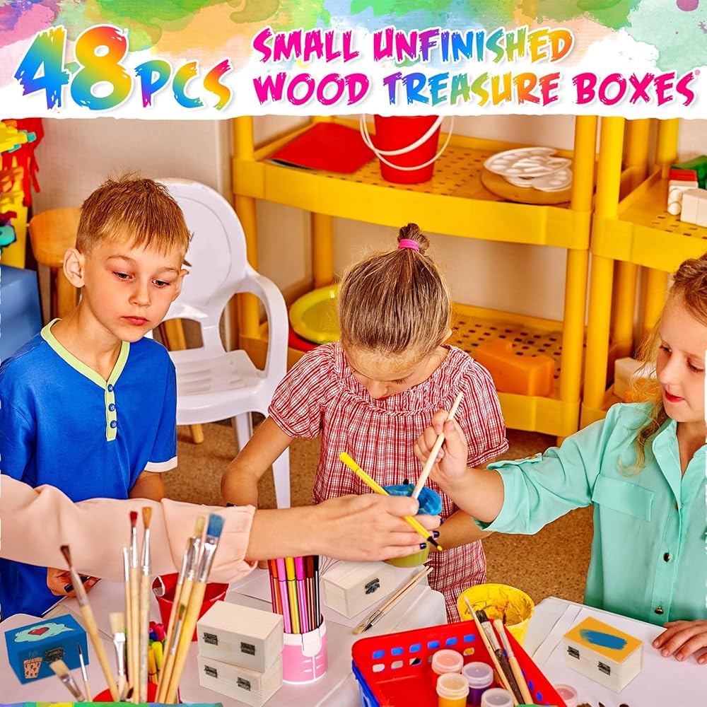 48 x Unfinished wood treasure boxes