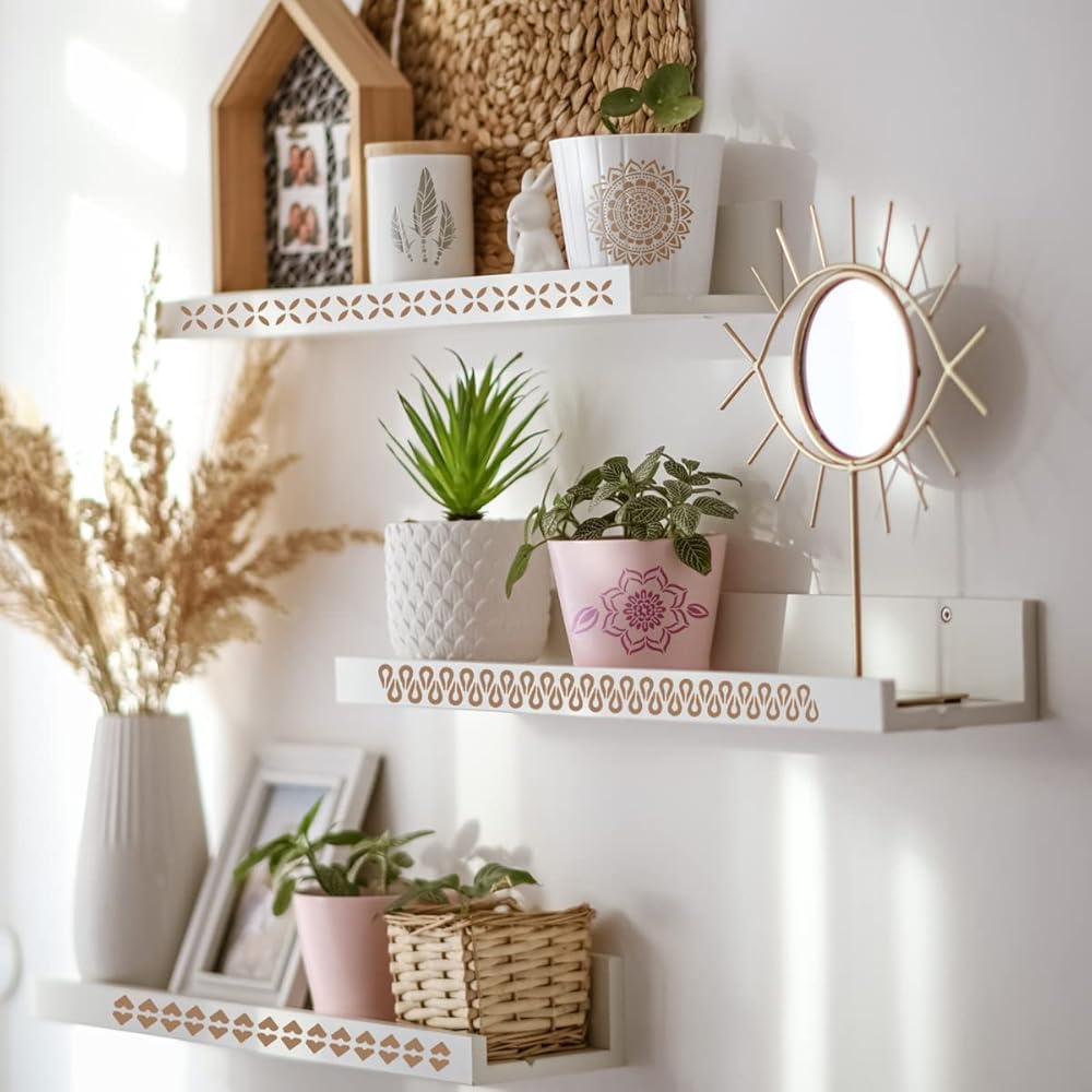 PACKAGE INCLUDING - the snowflake stencils set includes 3sizes, 10 x 7 inch (Large), 7.8 x 7.8 inch (Medium), 5 x 10 inch (Small), there are more than 50 styles of beautiful snowflake logos, enough to meet your various DIY projects. instead of wallpaper or stickers, use painting templates to create a new look of your Christmas party