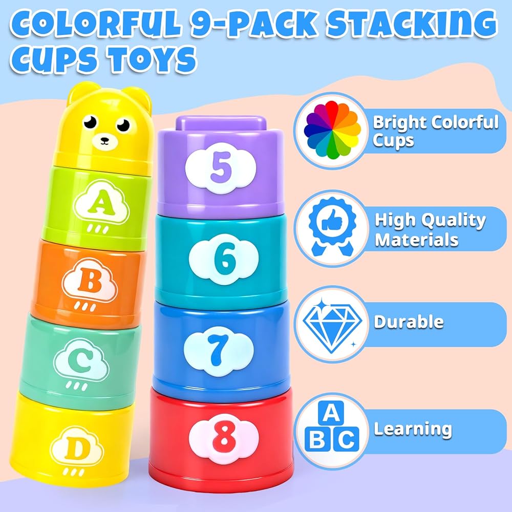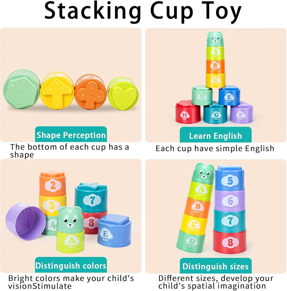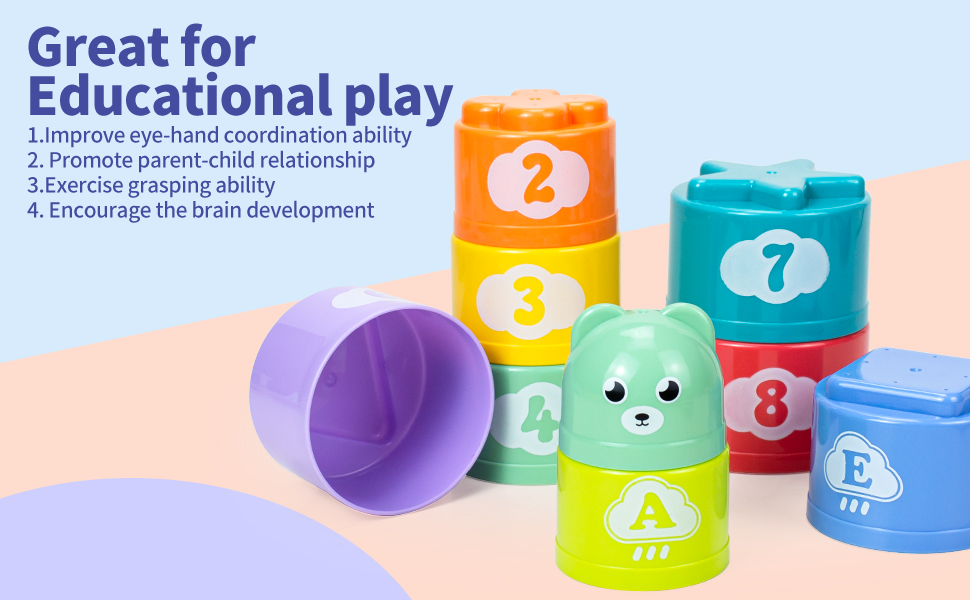 ✨ [بناء المهارات أثناء اللعب]: كألعاب تعليمية وتعليمية، يمثل كل كوب لون لونًا، ويحتوي جسم الكوب على مزيج من الأرقام والحروف، والتي يمكن استخدامها لممارسة الحسابات وتعلم الحروف. تحفيز أيديهم- تنسيق العين والمرونة من خلال لمسة بسيطة أو تراكب.