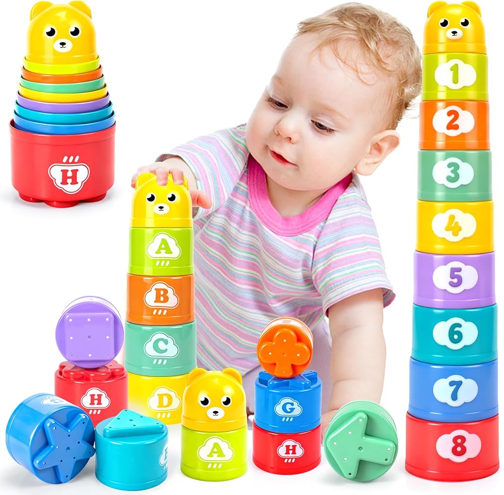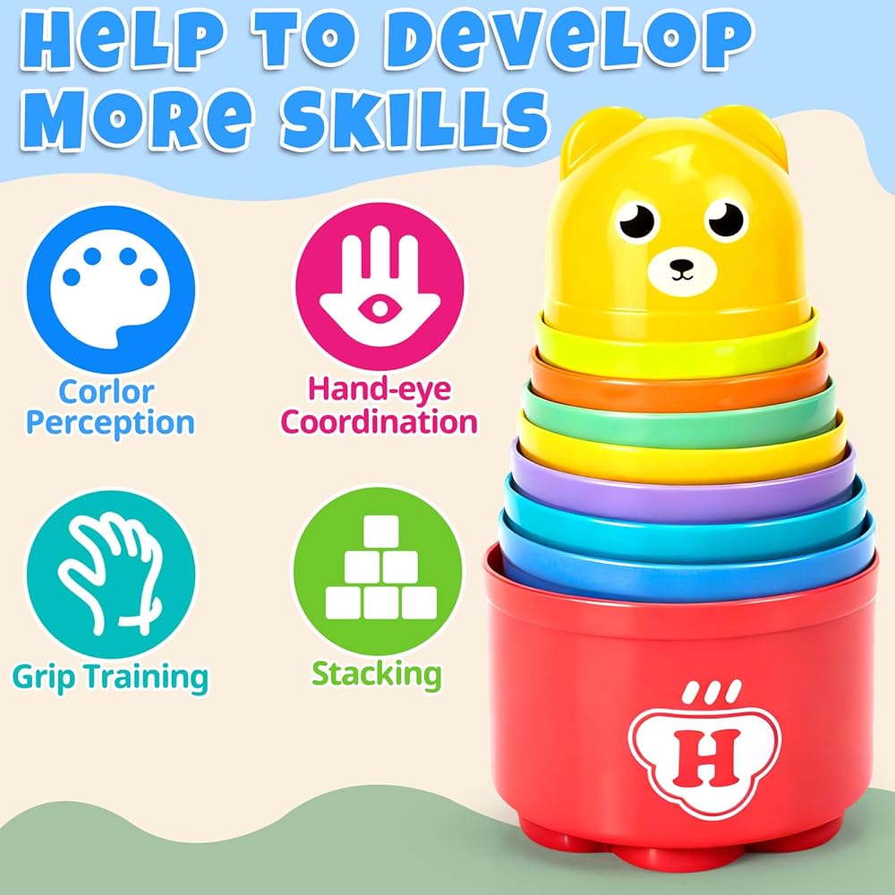 🌈[لعبة أكواب تكديس الأطفال الملونة]: يمكن تكديس الأكواب المكونة من ثمانية ألوان على أي حال. يمكن للطفل تكديسها أو تحطيمها أو التعشيش داخل بعضها البعض أو رشها أو بناء قلعة رملية. مخصصة للرضع والأطفال الصغار والمتعلمين في مرحلة مبكرة من العمر. من 6 أشهر إلى 3 سنوات.