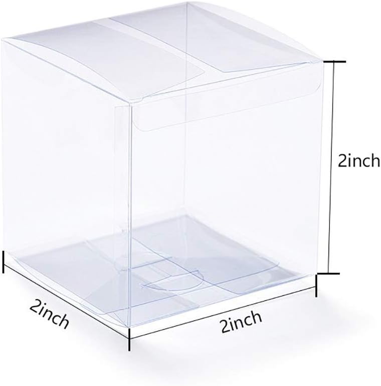 علب بلاستيكية شفافة من البولي فينيل كلورايد، علبة هدايا بلاستيكية مربعة 5.08 سم × 5.08 سم، صندوق تغليف شفاف لهدايا الحفلات، الزفاف، هدايا عيد الميلاد، الحلوى، الكب كيك والمجوهرات، 50 قطعة