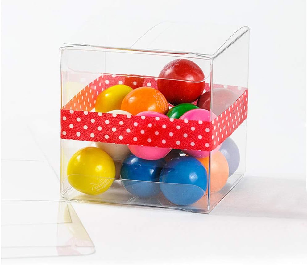 • سهلة التجميع: صندوق بلاستيكي شفاف 5.08 × 5.08 × 5.08 سم لحلوى الهدايا تأتي مع طيات محددة مسبقًا لذلك من السهل جدًا تجميعها. يحتفظ بشكلها ويبقى مغلقًا.