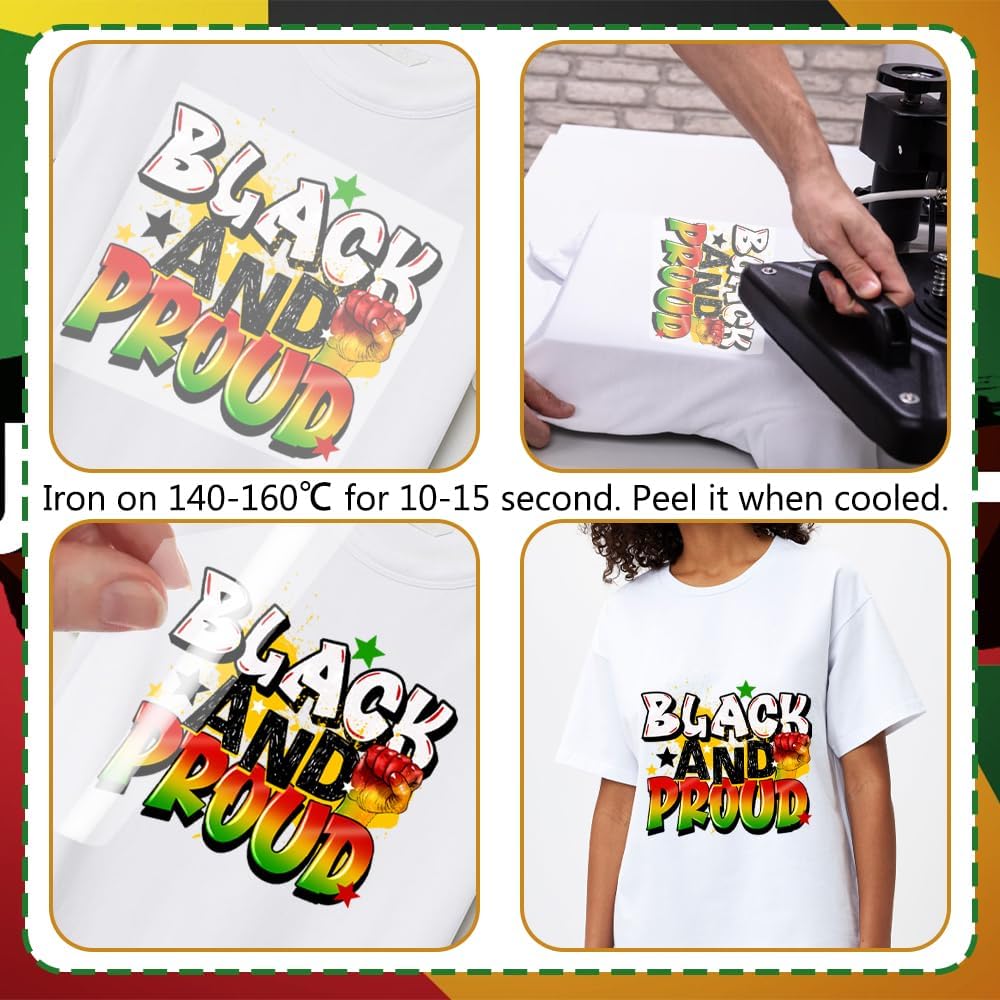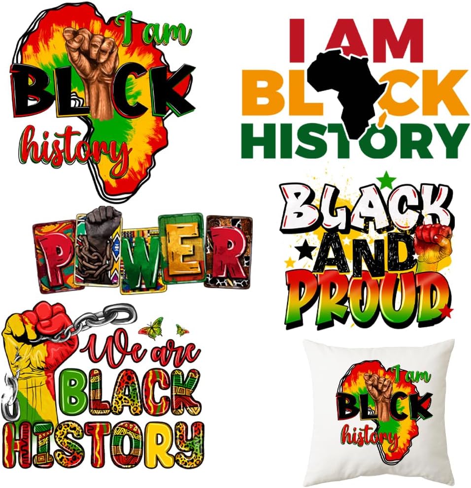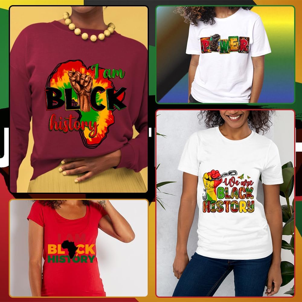 【Iron on Transfers for T Shirts】The package contains 5PCS Black History theme iron on transfer designs, which can well meet your decoration, sharing and replacement needs for Black History.
