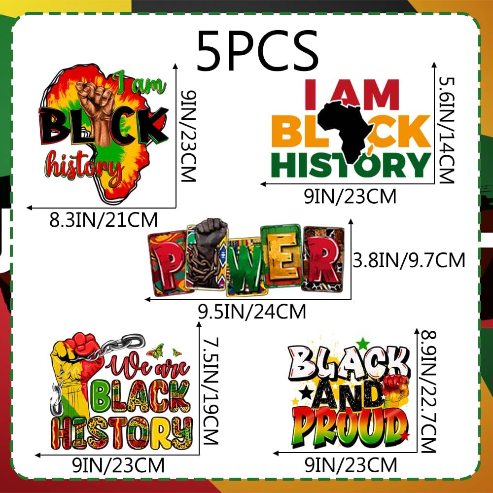 5PCS Black History Iron on Decals, Iron on Transfers DTF Transfers Ready to Press Iron on Decals for T Shirts Ready to Press Heat Transfer Designs Screen Print Transfers Ready to Press Iron on Designs