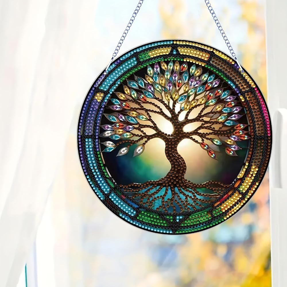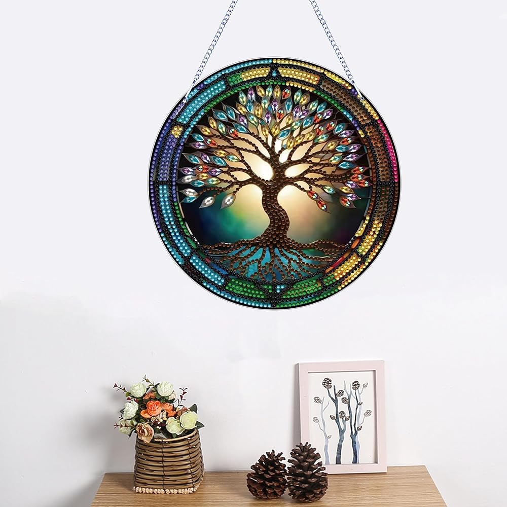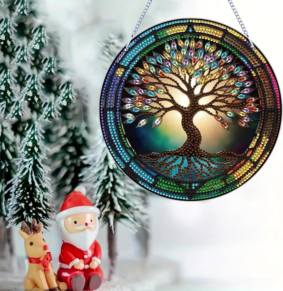 مجموعات ملصقات أشعة الشمس الماسية - مجموعات الرسم الماسي لايف اوف تري صن كاتشرز للحديقة مع مجموعات الرسم الكريستالية التي تصنعها بنفسك مع قلادات كريستال في حقيبة منفصلة. لوحة ماسية سهلة التركيب للمبتدئين والبالغين والأطفال.