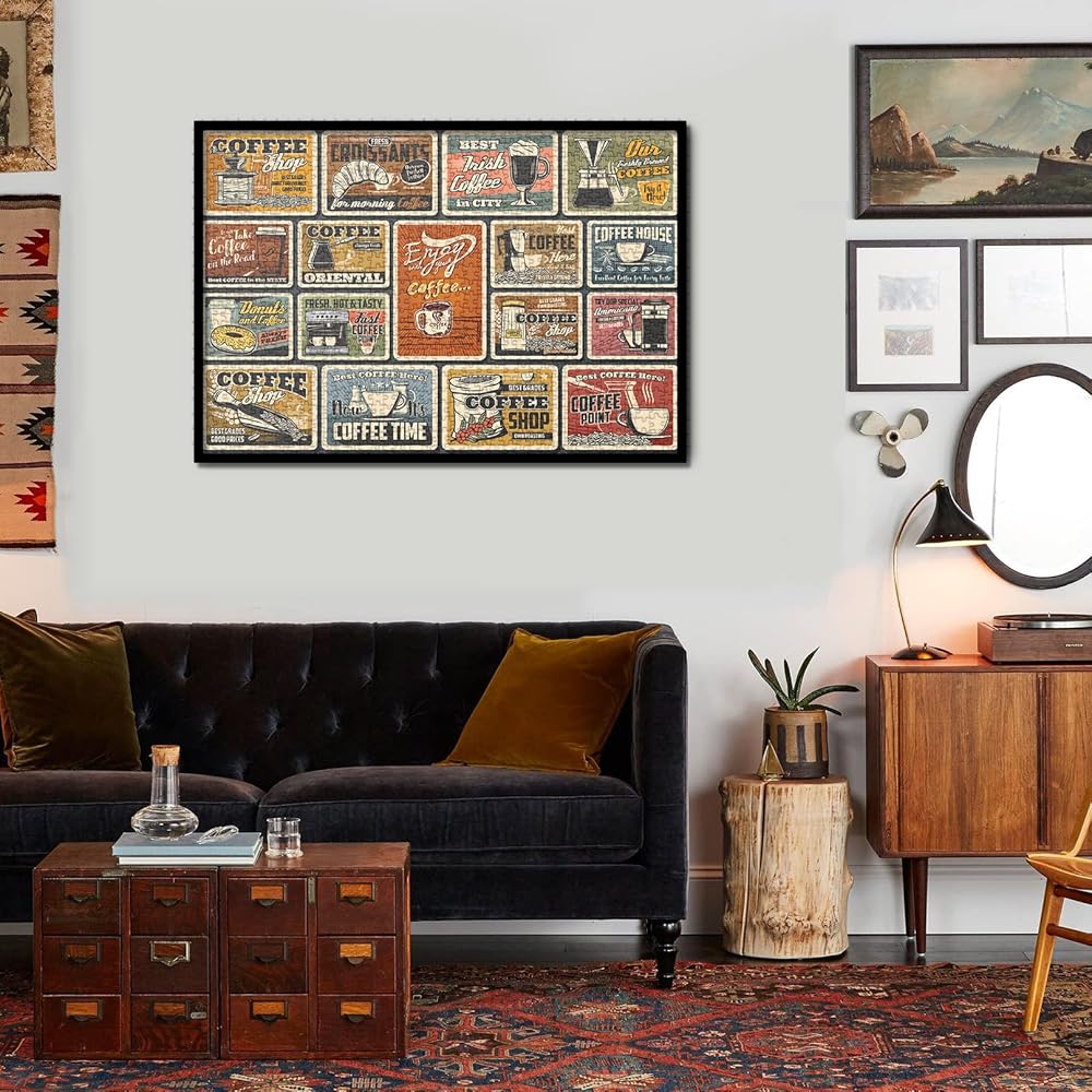 احجيات قهوة للبالغين، احجية جيغسو بوستر عتيقة من 1000 قطعة تحتوي على 17 ملصق قهوة، احجيات كلاسيكية كديكور حائط للمقهى