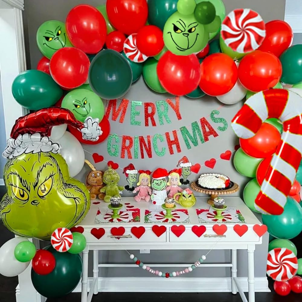 【لوازم رائعة لحفلات عيد الميلاد】أقواس إكليل البالونات هذه المصنوعة من البالونات الحمراء والخضراء مثالية لديكورات حفلات عيد الميلاد، وديكورات حفلات رأس السنة، وخلفيات صور الكريسماس، وما إلى ذلك. خلق جو رائع لحفلات عيد الميلاد لعائلتك!