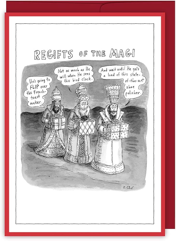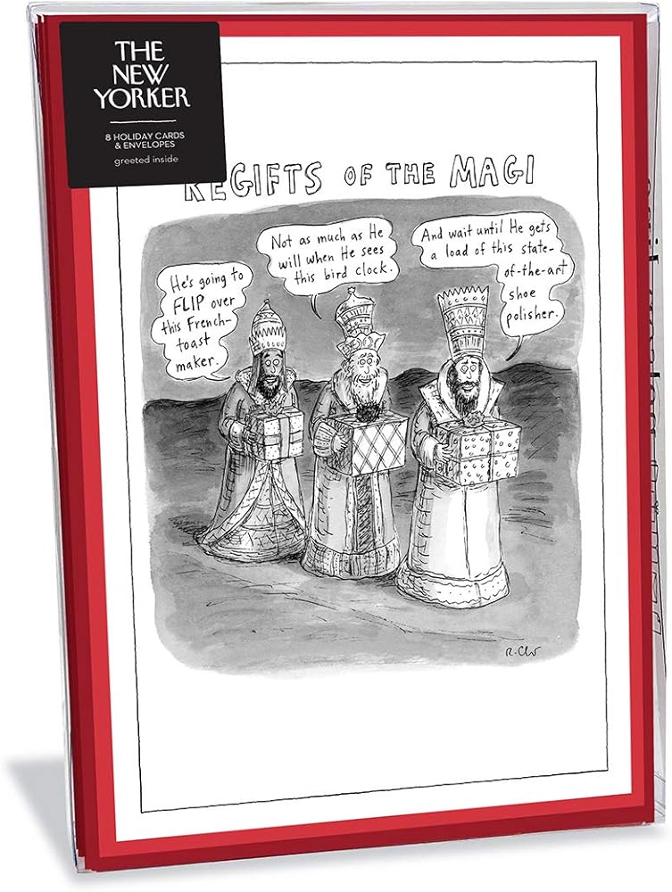 تتميز البطاقات برسوم كاريكاتورية من مجلة نيويوركر تم إنشاؤها بواسطة رسامي الكاريكاتير المشهورين