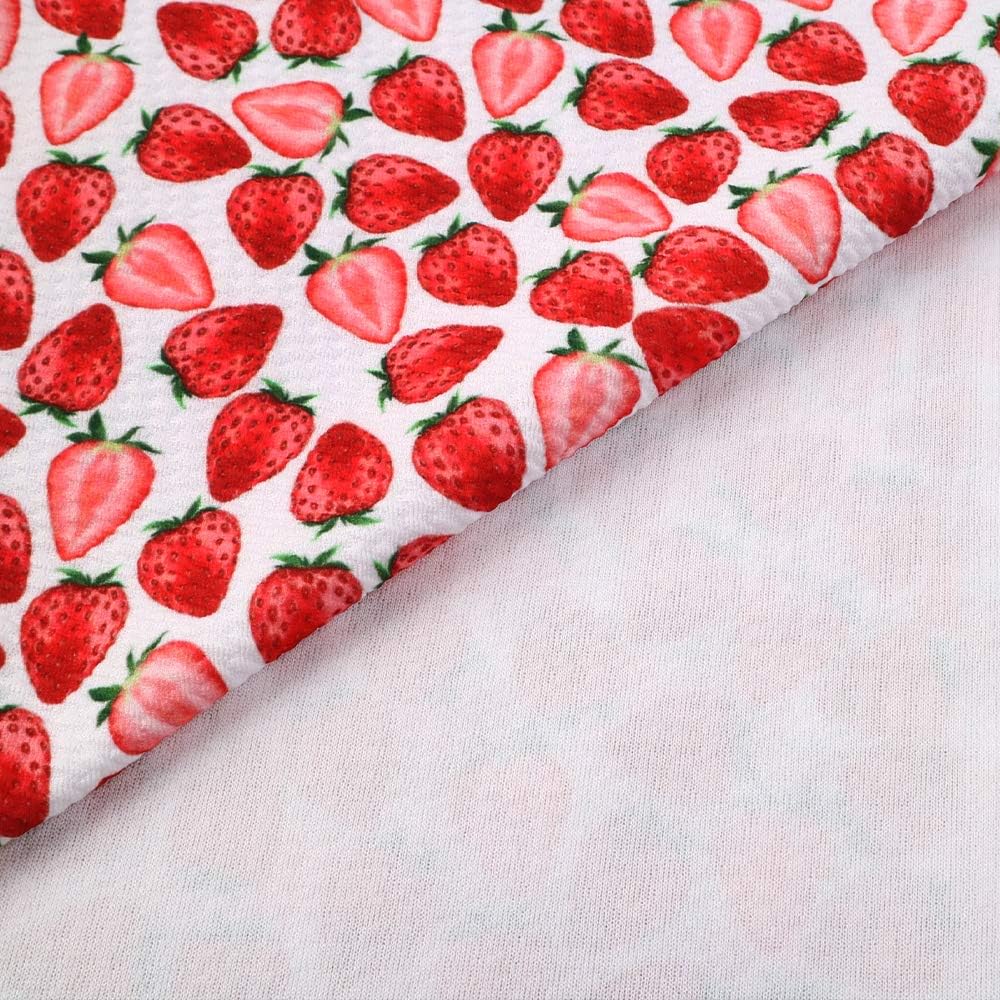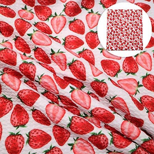 David Angie Fruit Pattern Strawberry Printed Bullet Textured Liverpool Fabric 4 Way Stretch Spandex Knit Fabric by the Yard for Head Wrap Accessories