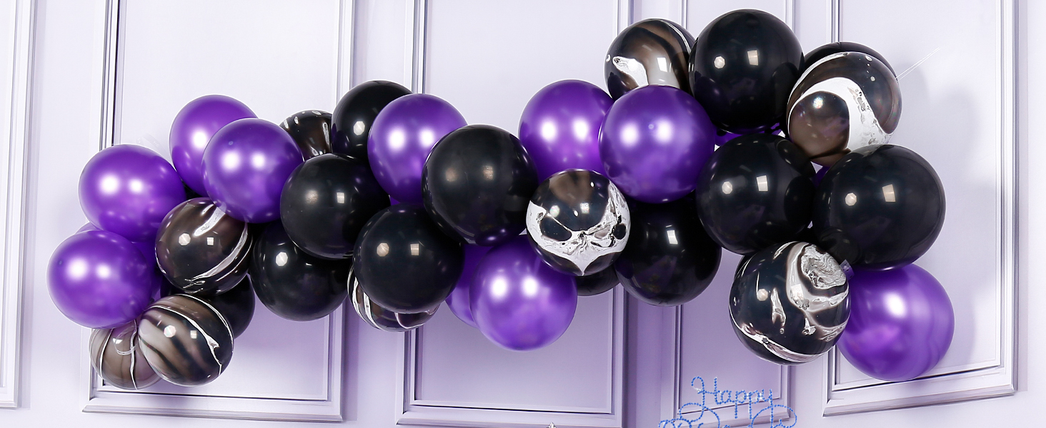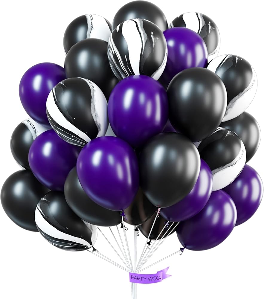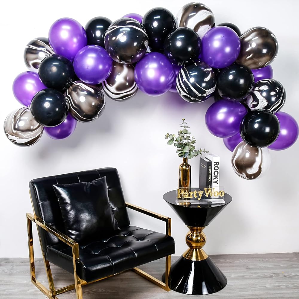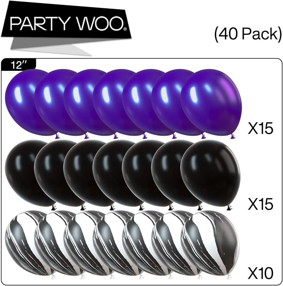 بارتي وو بالونات باللونين الاسود والارجواني، 40 قطعة 12 انش من بالونات اللؤلؤ الارجواني، بالونات رخامية، بالونات ارجوانية وسوداء، بالونات ارجواني ملكي لتزيين الحفلات الارجوانية، حفلة مصاص الدماء، حفلة