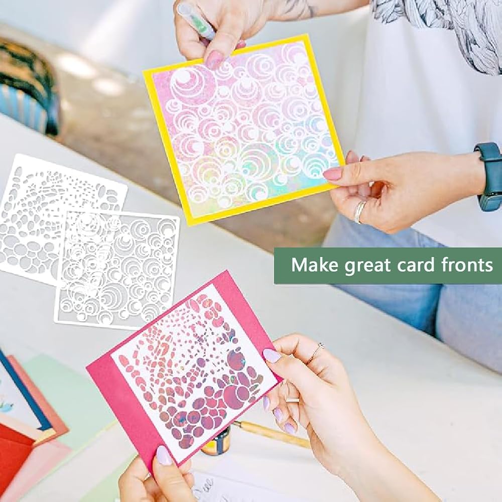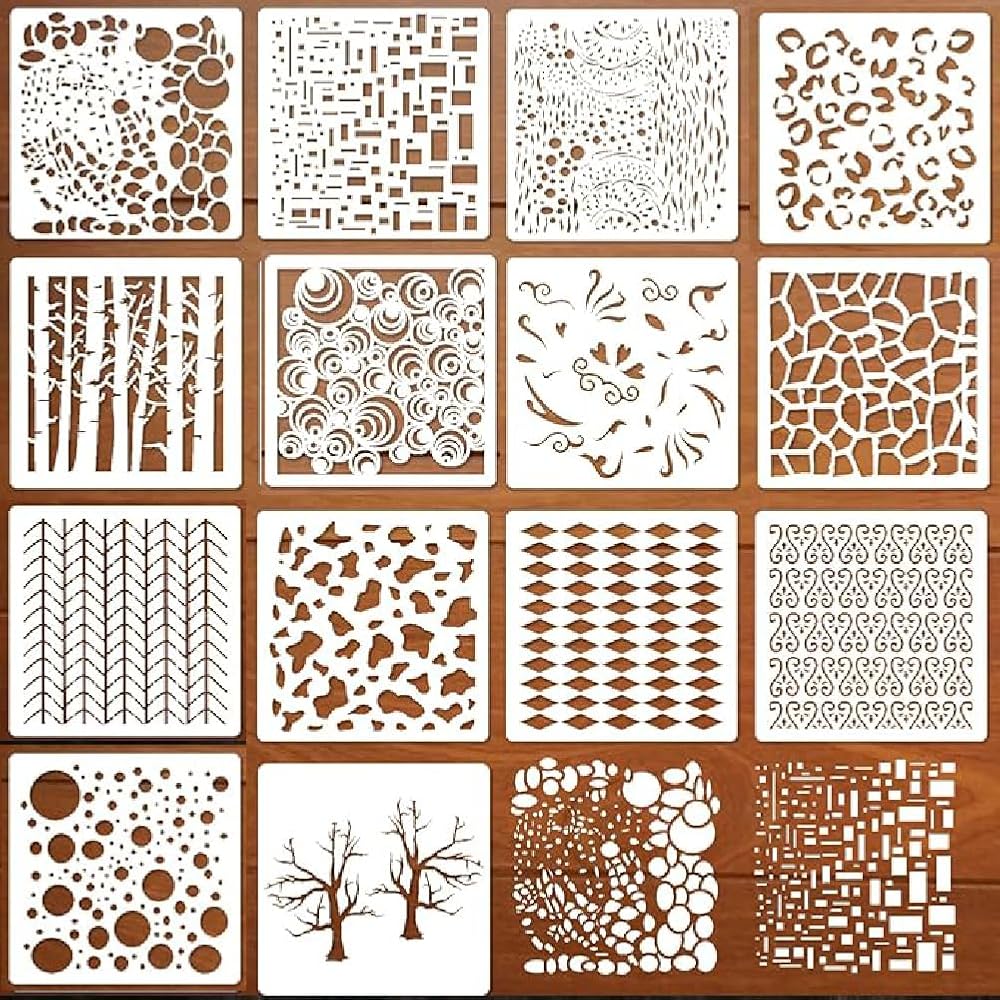 مع مجموعة واسعة من التصاميم، من مطبوعات البقر إلى فقاعات البحر وفروع الأشجار، تتيح لك مجموعة الاستنسل الخاصة بنا إنشاء خلفيات وسائط مختلطة آسرة وإضافة نسيج إلى مشاريعك. متوافقة مع الأسطح والوسائط المختلفة، مما يجعلها مثالية للرسم وسجل القصاصات والحرف اليدوية.