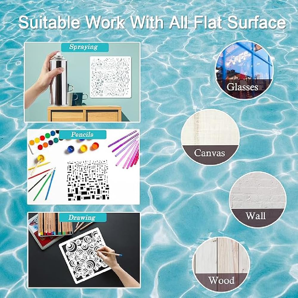 【استخدامات لا حصر لها】سواء كنت تحب الرسم أو سجل القصاصات أو الحرف اليدوية، فإن الاستنسل الخاص بنا هي أدوات متعددة الاستخدامات تعمل على مجموعة متنوعة من الأسطح مثل الخشب والقماش والأقمشة والزجاج والورق. استخدمها مع الأحبار والأكريليك والألوان المائية والفرش والطباشير وأكثر من ذلك لإضفاء الحيوية على رؤيتك الفنية.