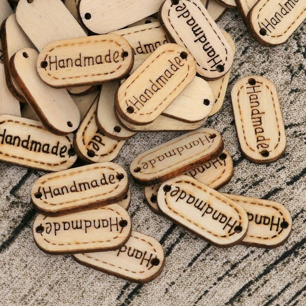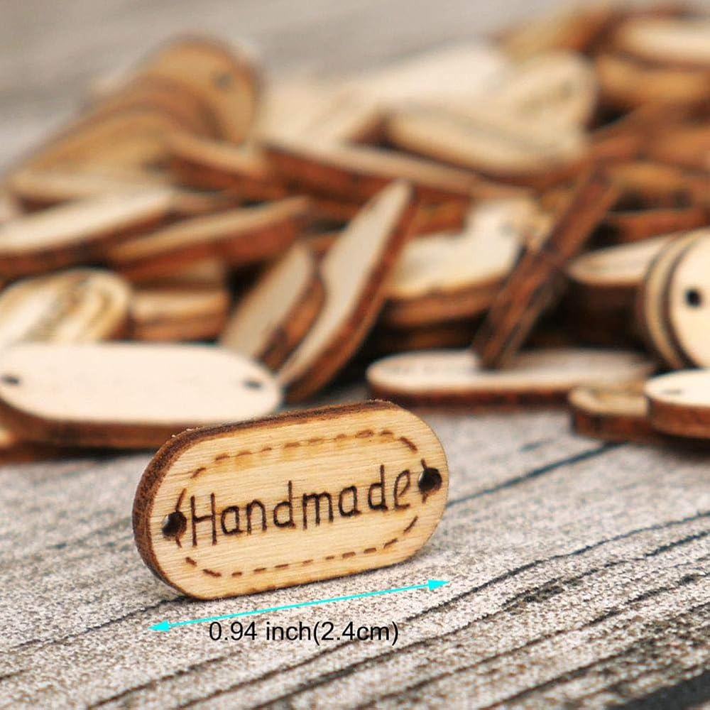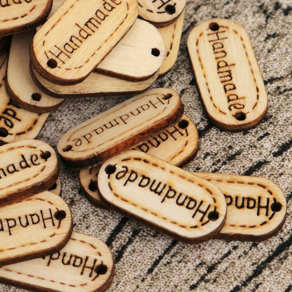 علامات خشبية مصنوعة يدويًا من NUOMI، ملصقات شخصية 300 قطعة من علامات الهدايا الخشبية البيضاوية مع فتحتين للحرف اليدوية المعلقة/زخارف الخياطة