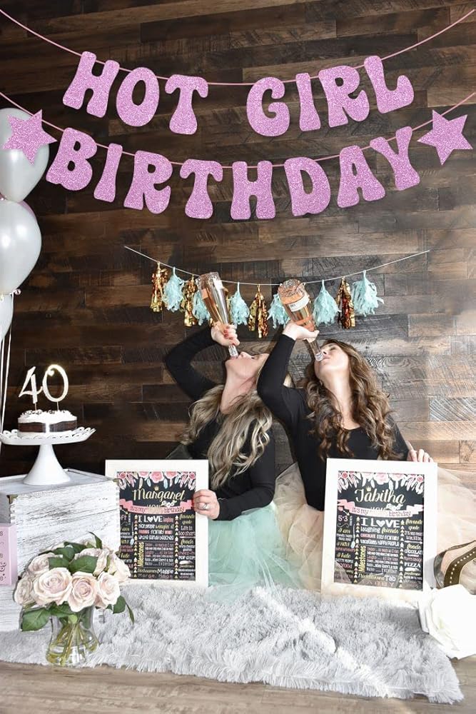 لافتة عيد ميلاد هوت جيرل لأخيرة 21 زينة لحفلات عيد الميلاد الحادي والعشرين والخامس والثلاثين للفتيات (وردي)