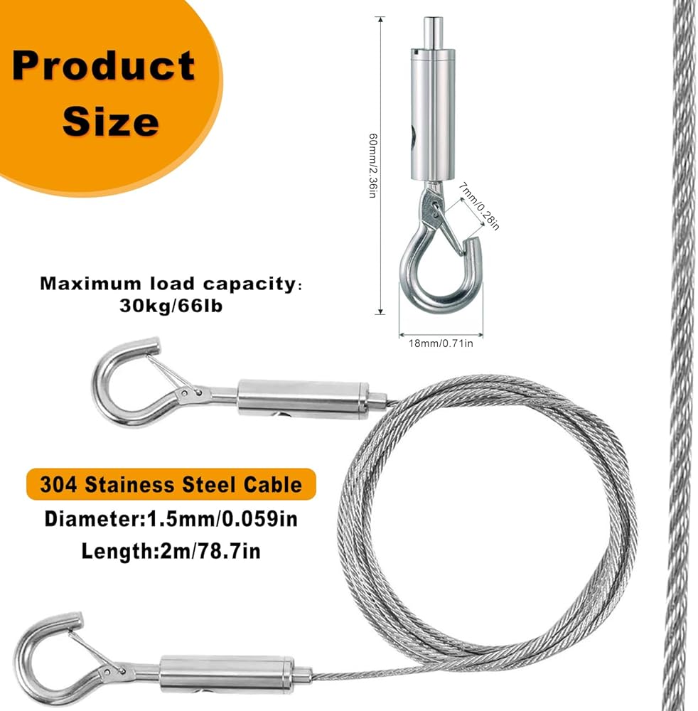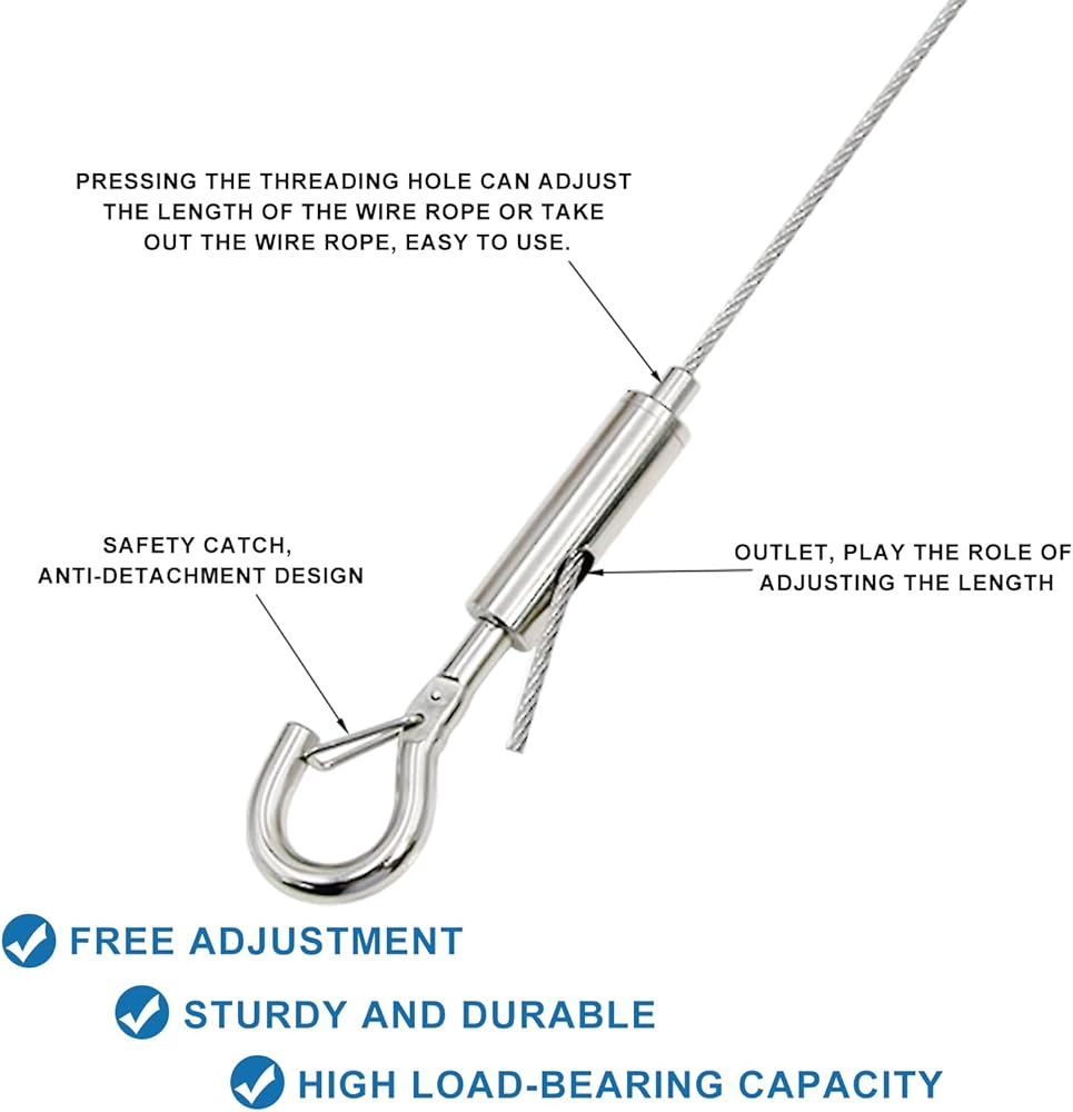 Exceptional Durability - Crafted from premium 304 stainless steel, our hanging wires consist of 49 ultra-thin steel strands measuring 0.059 inches in diameter. They are built to withstand wear and tear and boast an impressive 20kg (45 lbs) load capacity without breaking.