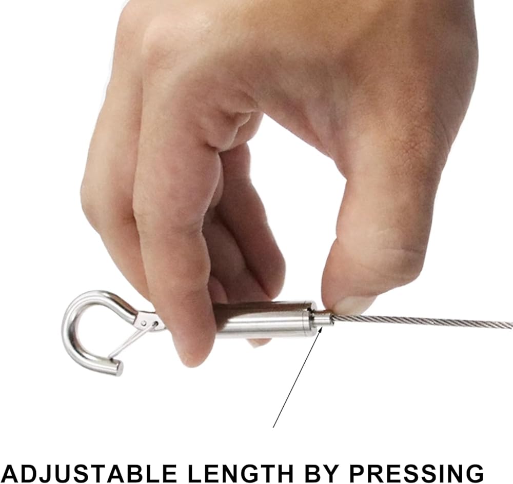 Effortless Customization - Tailor the length of your display wire with ease. Simply hold the adjustment column, extend the stainless steel cable to your desired position, and release the button for a secure hold – no tools required.