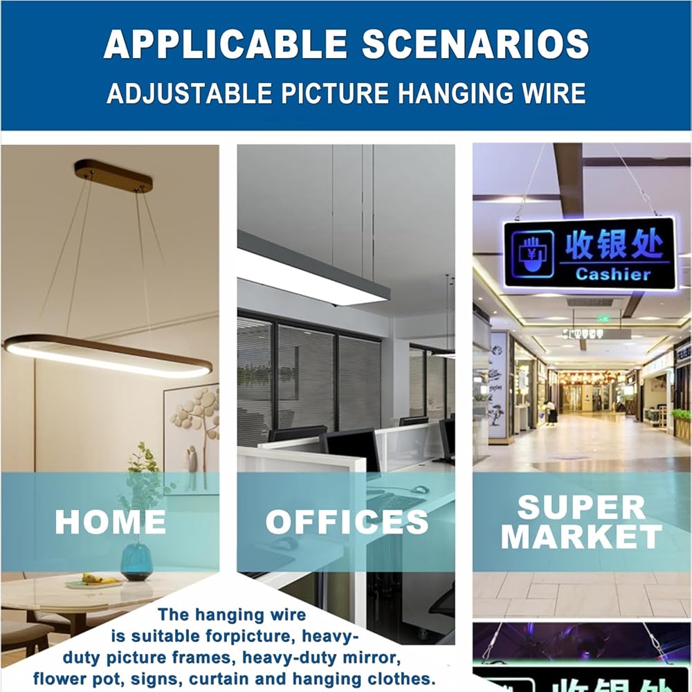 Adjustable Picture Hanging Wire - The hanging wire is suitable for picture, heavy-duty picture frames, heavy-duty mirror, flower pot, signs, curtain and hanging clothes.