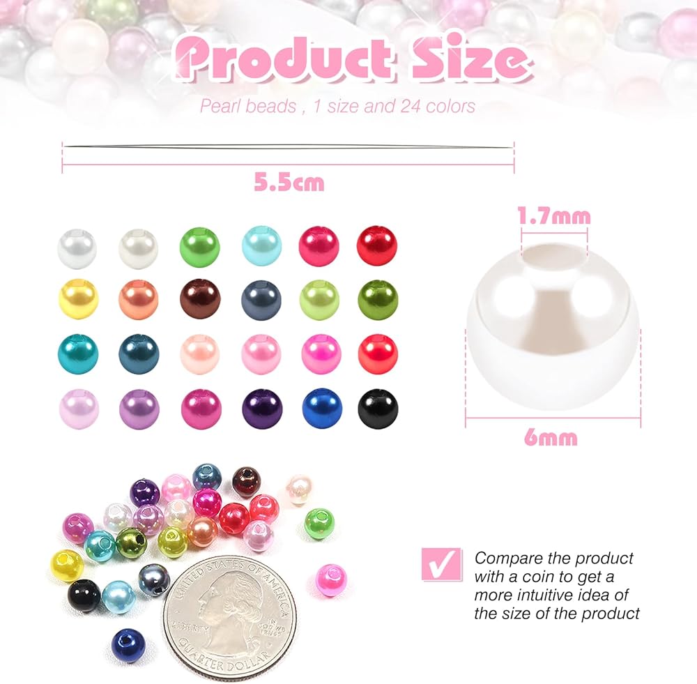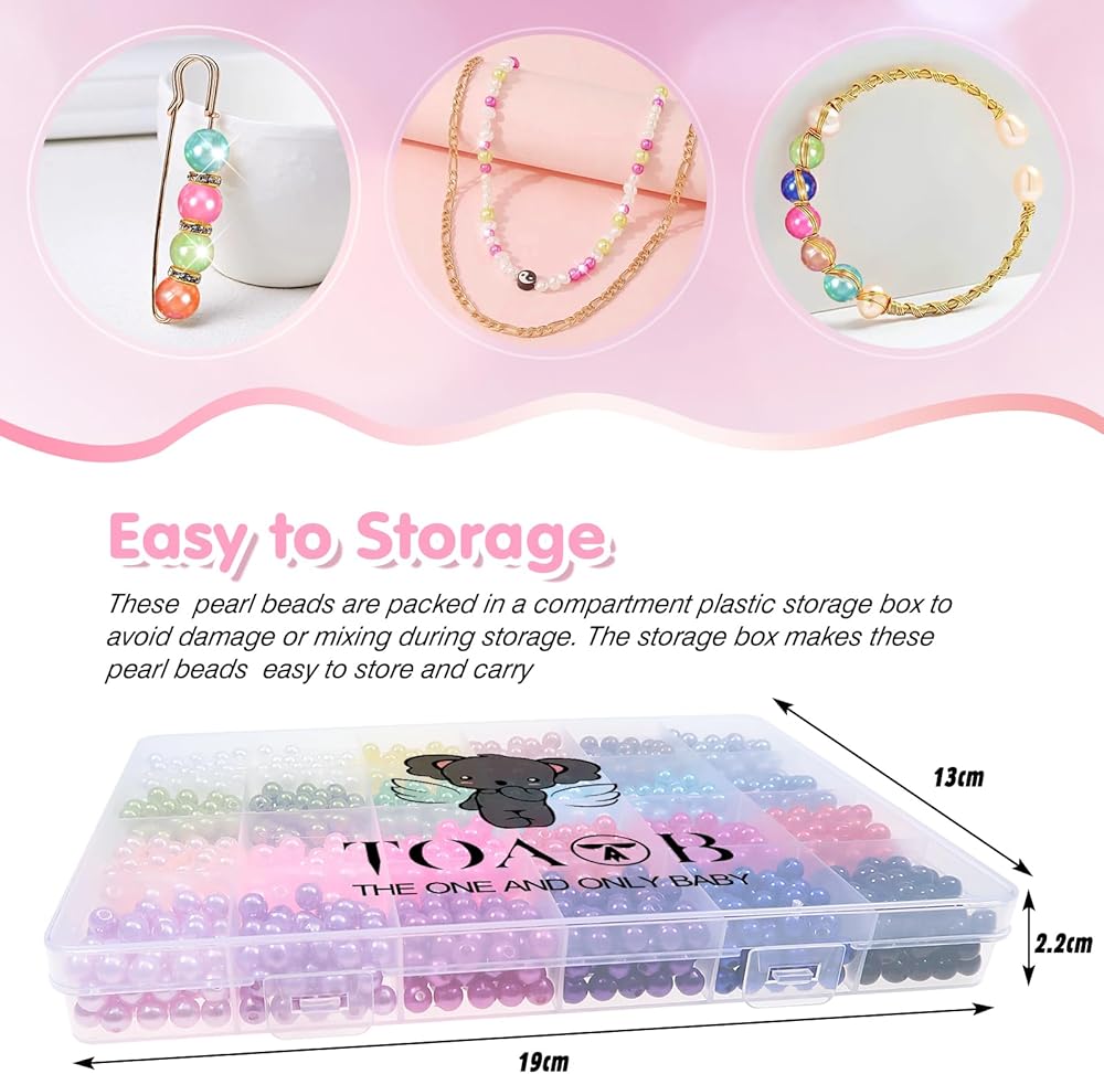 طقم خرز متباعد فضفاض مكون من 10 قطع من TOAOB 500 قطعة مصنوع من خرزات اللؤلؤ الزجاجي المستدير من أجل صناعة القلائد اليدوية والأساور المصنوعة من المجوهرات 6 مم لون رائع