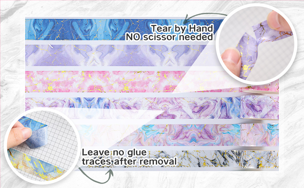 🩷【تصميم نابض بالحياة】: تم تصميم شريط الواشي الرخامي المصنوع من رقائق الذهب على يد مصممين يابانيين محترفين. يمكن أن توفر الألوان المختلفة المزيد من الخيارات لاستخدامك. تصميم نابض بالحياة يمنحك الإبداع. سوف يفاجأ أصدقاؤك بالهدايا والديكورات الإبداعية التي تصنعها باستخدام شريط لاصق واشي هذا.