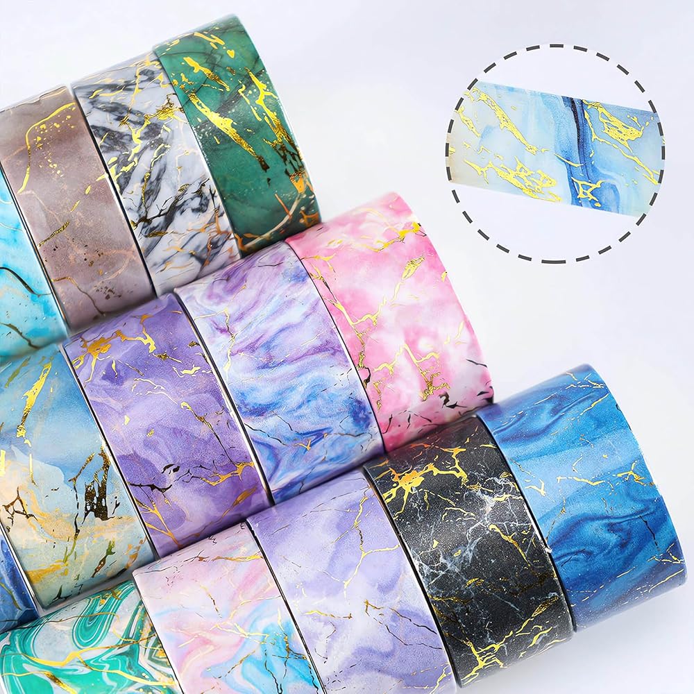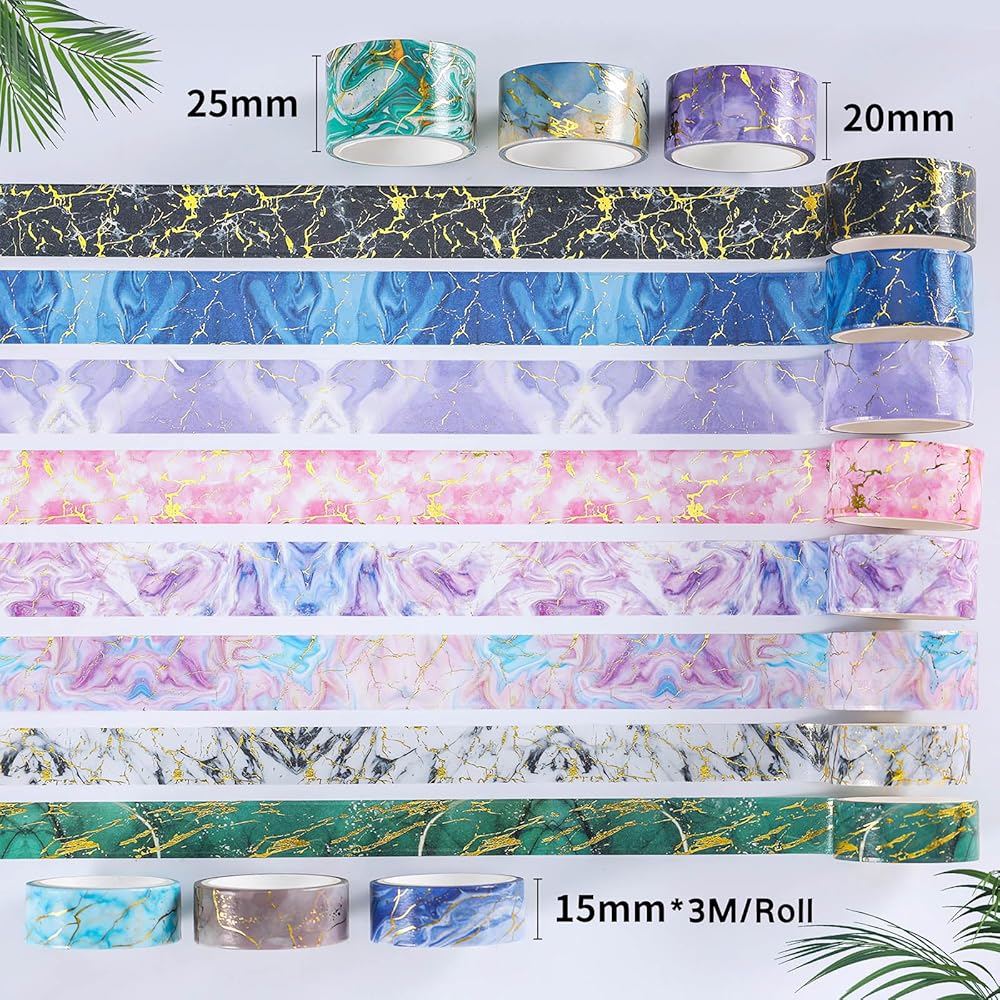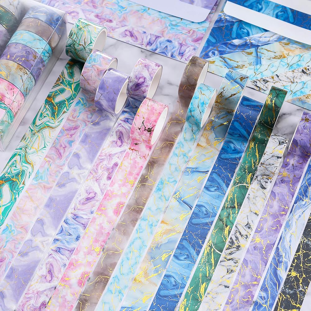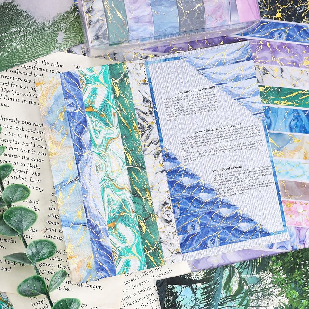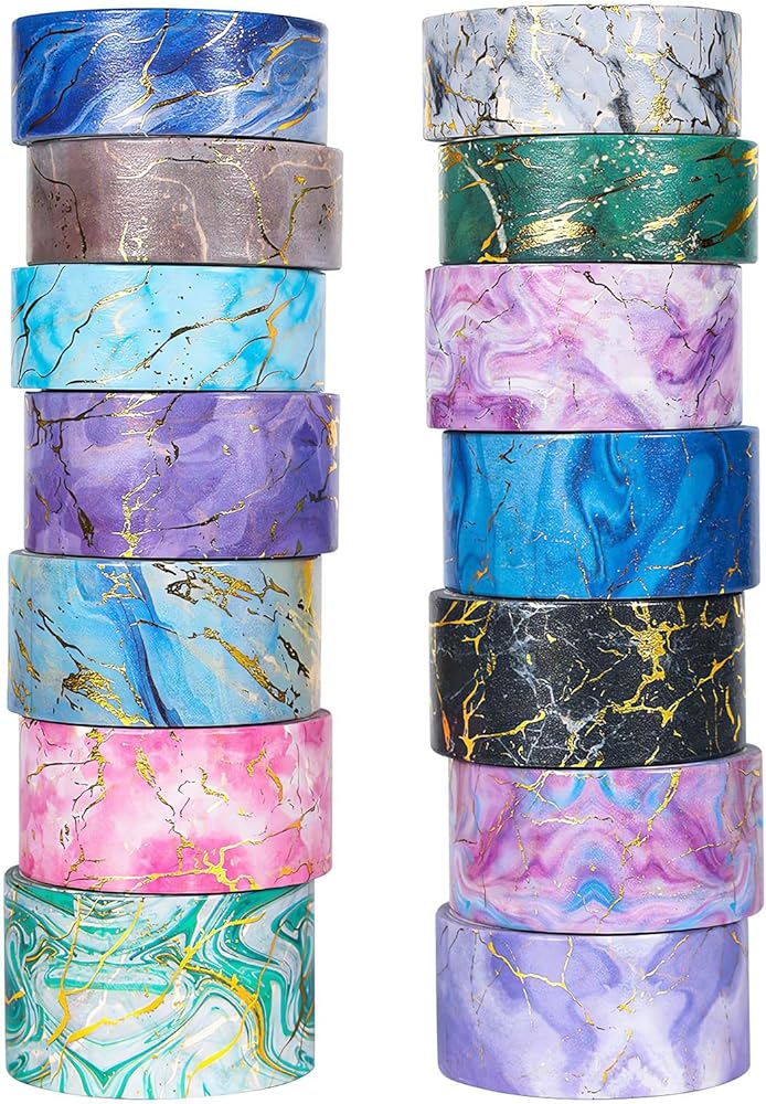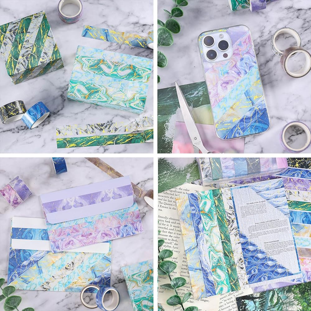💜【مجموعة أشرطة غسيل رخامية】: 15 لفة من أشرطة واشي الملونة برقائق ذهبية، 3 عروض مختلفة 15 و20 و25 مم، الطول 3 أمتار. تصميم جديد بنمط الرخام الأخضر والأرجواني والوردي والأزرق. تضيف مجموعة أشرطة واشي المصنوعة من رقائق الذهب اللون والحيوية إلى الأشياء التي يتم لصقها، مما يجعل الحياة اليومية أكثر إثارة للاهتمام.