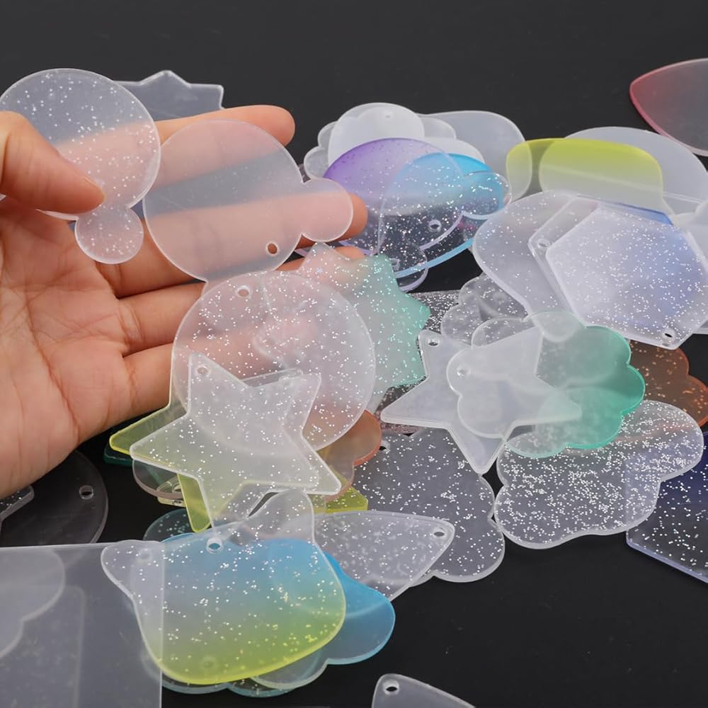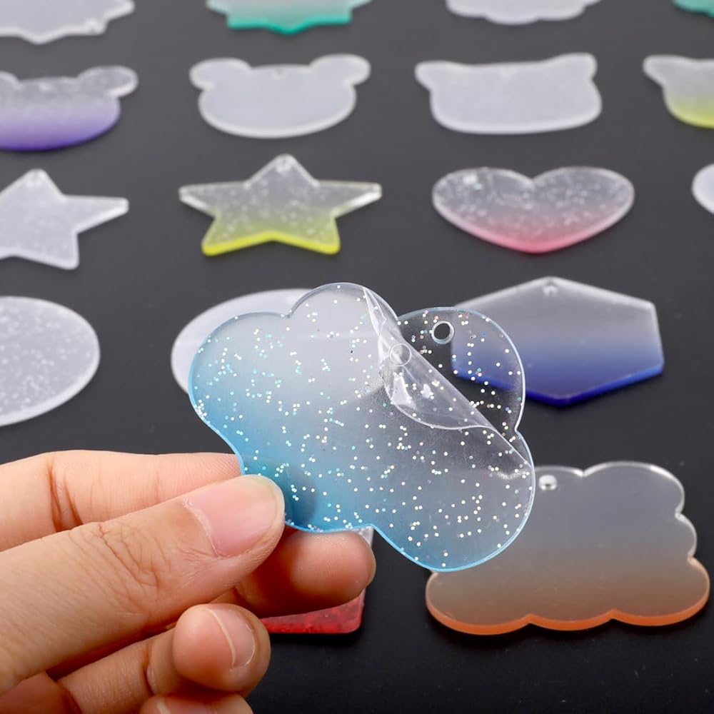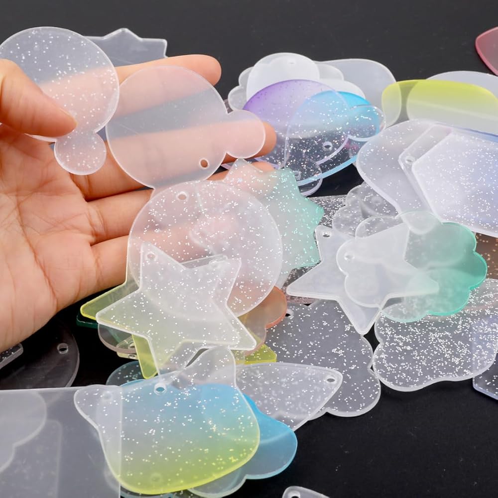 زخارف أكريليك فارغة: تأتي ألواح الأكريليك لدينا في اثني عشر شكلاً، وكل شكل يأتي في أربعة أنماط: واحد متدرج، وواحد شفاف، وواحد شفاف مع جليتر، وواحد متدرج مع جليتر. لا يوجد شيء في هذه المجموعة مكرر.