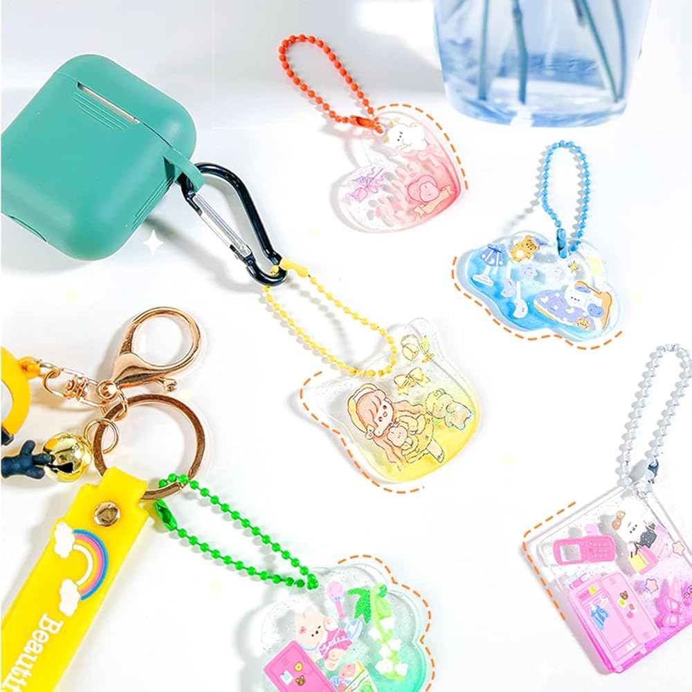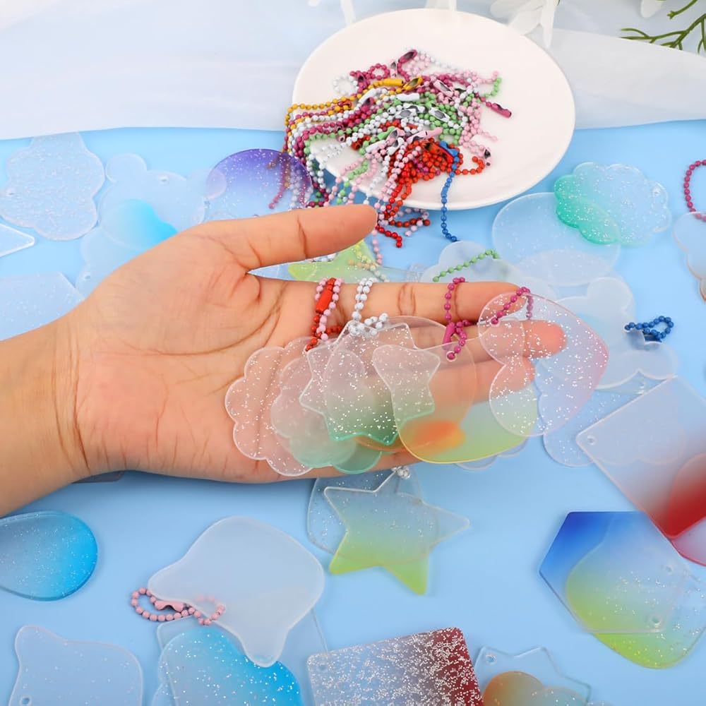 مجموعة 12 شكلاً من سلسلة المفاتيح الأكريليكية DIY: 48 قطعة من الفراغات الأكريليكية الشفافة في 12 نمطًا، 50 قطعة من سلسلة الخرز بلون عشوائي، 1 قطعة ملاقط دقيقة. رائعة لمشروعات الفينيل، والحرف اليدوية وصناعة سلاسل المفاتيح.