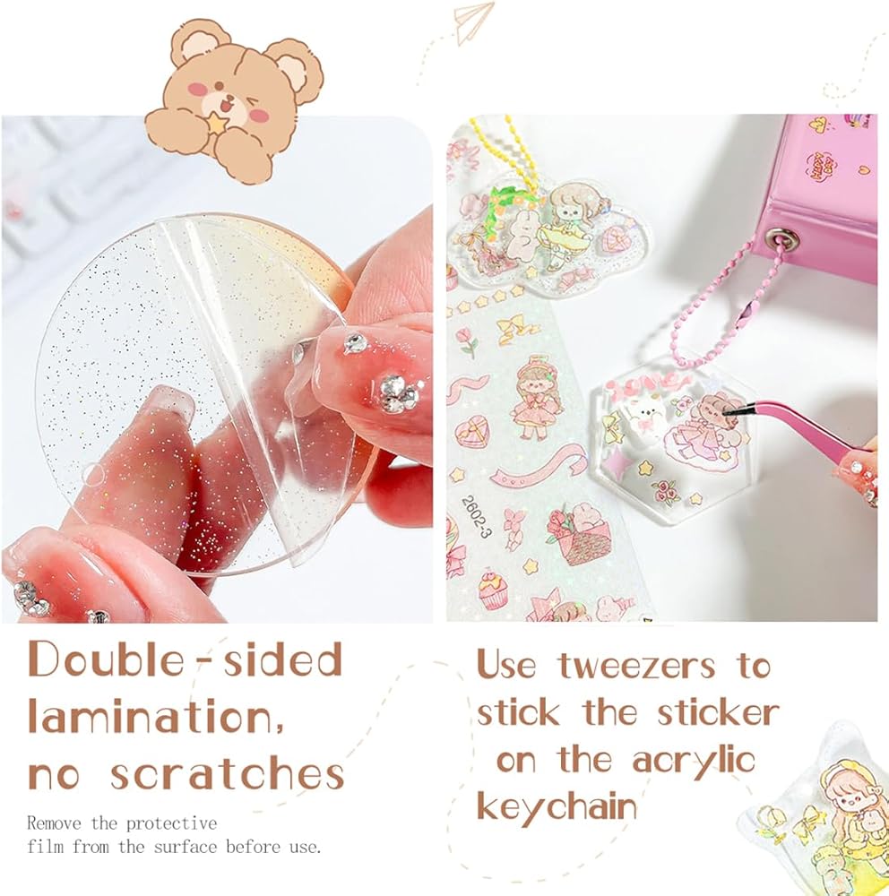 فراغات سلسلة مفاتيح شفافة من الأكريليك: مصنوعة من الأكريليك الشفاف عالي الجودة، وتتميز بقدرة ممتازة على تحمل الطقس ومقاومة للخدش، وجميع أقراص الأكريليك مغطاة بطبقة واقية على كلا الجانبين والتي يجب تقشيرها عندما تكون جاهزًا لاستخدام الفراغ.