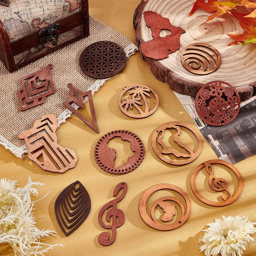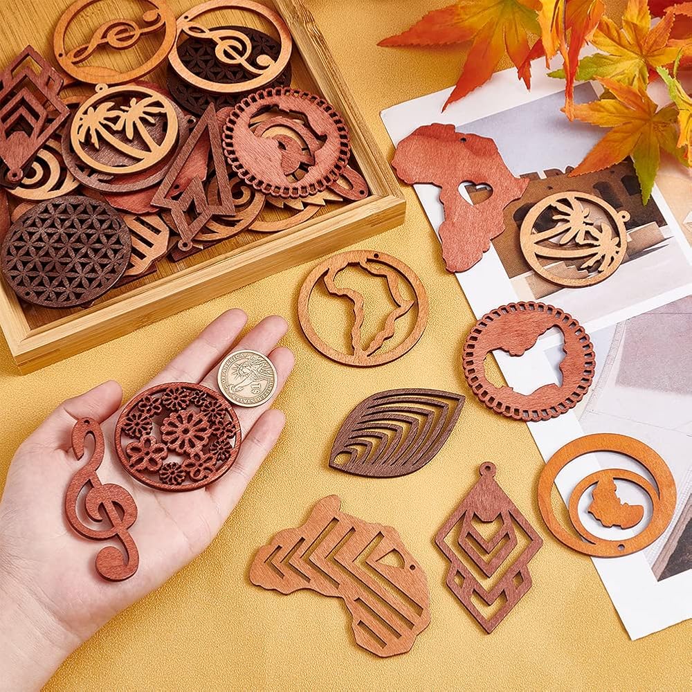 استخدام واسع: هذه القلادات الخشبية مثالية لصنع المجوهرات. يمكن صنعها في مجوهرات مثل القلادة والأقراط المتدلية والقلادات. يمكن استخدامها أيضًا لصنع زينة شجرة الكريسماس وسلاسل المفاتيح وبطاقات الهدايا وديكورات الحفلات المنزلية ودعائم الصور والمشاريع الفنية وما إلى ذلك.