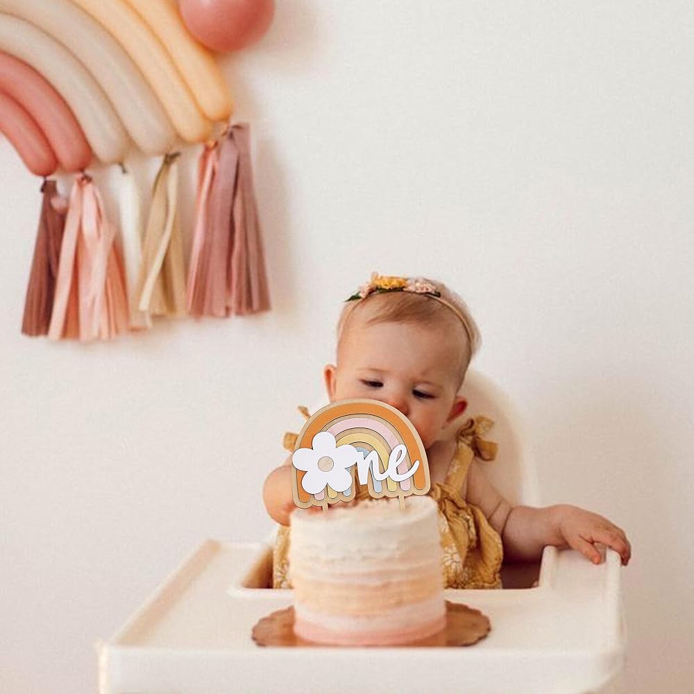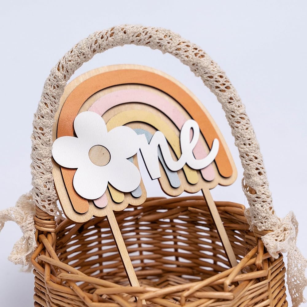 ABOUT THE DAISY CAKE TOPPER - This wooden cake topper is laser cut, wood printed and glued by hand, simple and functional first birthday decorations, easy to decorate.