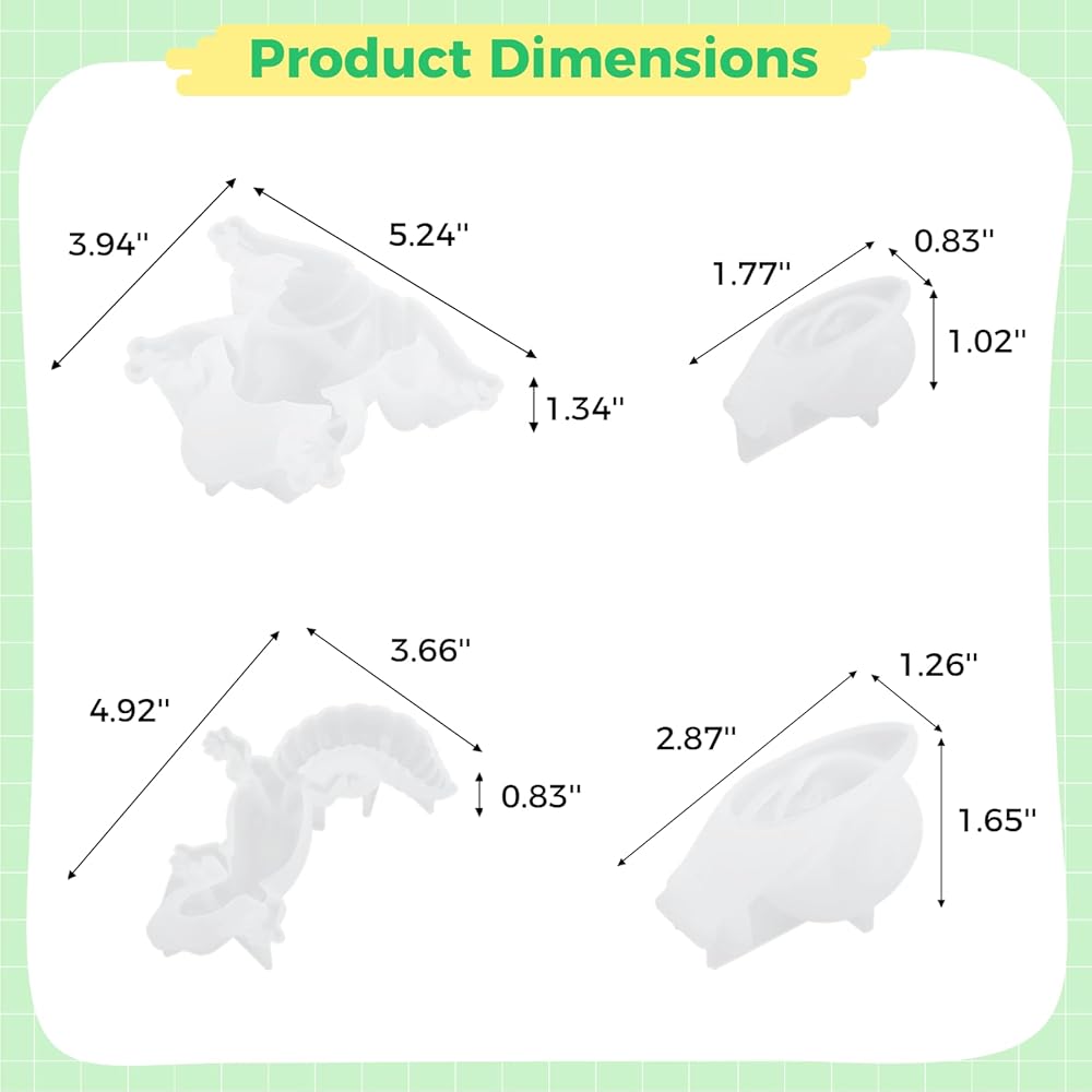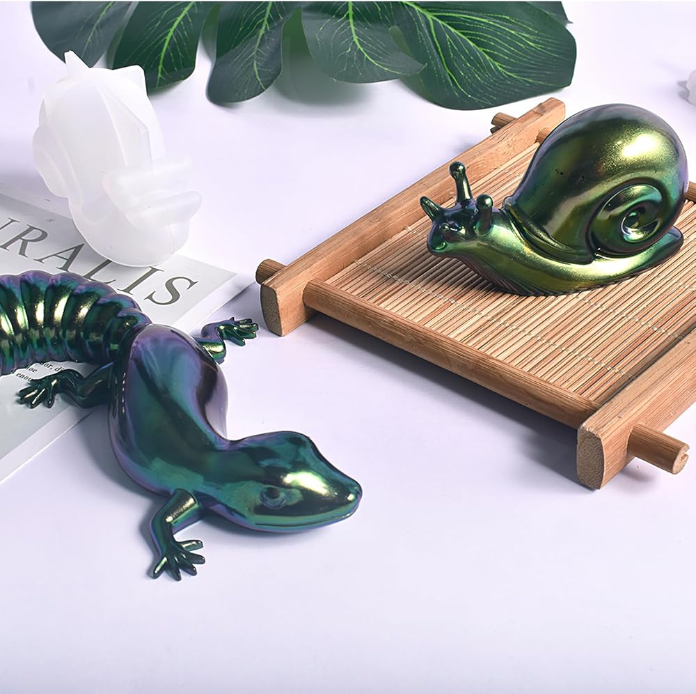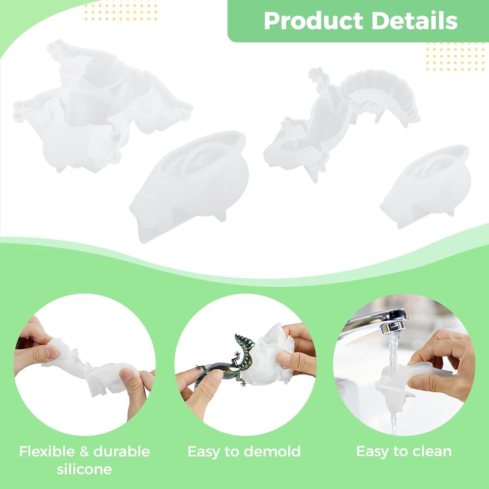 جويبي 4 قطع من قوالب راتنج الايبوكسي على شكل حيوانات، مجموعة قوالب سيليكون على شكل حيوانات الزواحف مع خلاط الراتنج، قوالب حيوانات ثلاثية الابعاد نابضة بالحياة للضفادع والسحلية والحلزون والحرف اليدوية