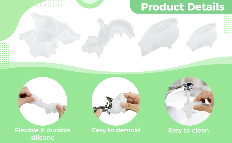【سهلة التنظيف وقابلة لإعادة الاستخدام】 التنظيف بعد جلسة الحرف اليدوية الخاصة بك سهل مع هذه القوالب. مصنوعة من مادة السيليكون المرنة ذات الأسطح الملساء، قوالب الحيوانات هذه مقاومة للتمزق ومتينة وسهلة التنظيف، ويمكن إعادة استخدامها مرارًا وتكرارًا. تواصل معنا إذا كانت لديك أي أسئلة. نحن دائمًا موجودون من أجلك.