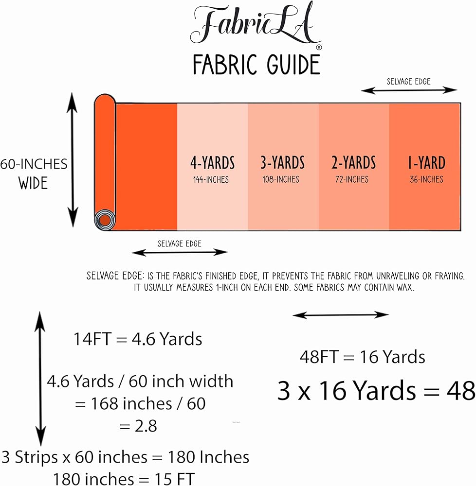 [ Length & WIDTH ] – Width: 58/60" Inches (150 CM), Length: Pre-cut 1 yard. You can choose between different available colors and yard sizes. If you need more lengthy continuous yards, please contact us