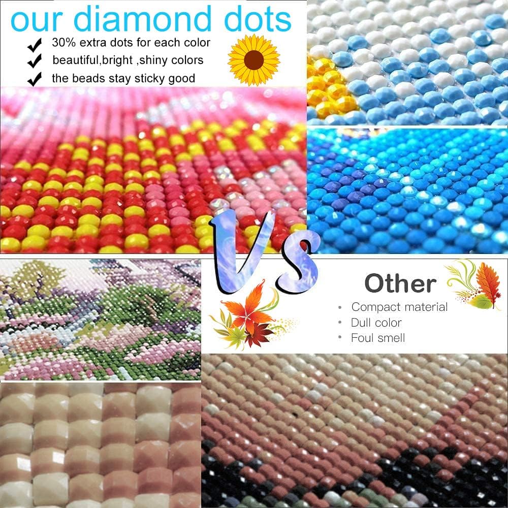 EXTRA DIAMONDS&GOOD ADHESION: Extra 30% dots/gems for each color, the diamond art is easy to use and sticks well with no extra help or assistance. Diamond gem paintings add luster to your every day.