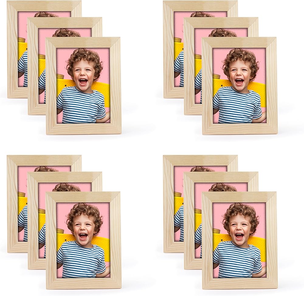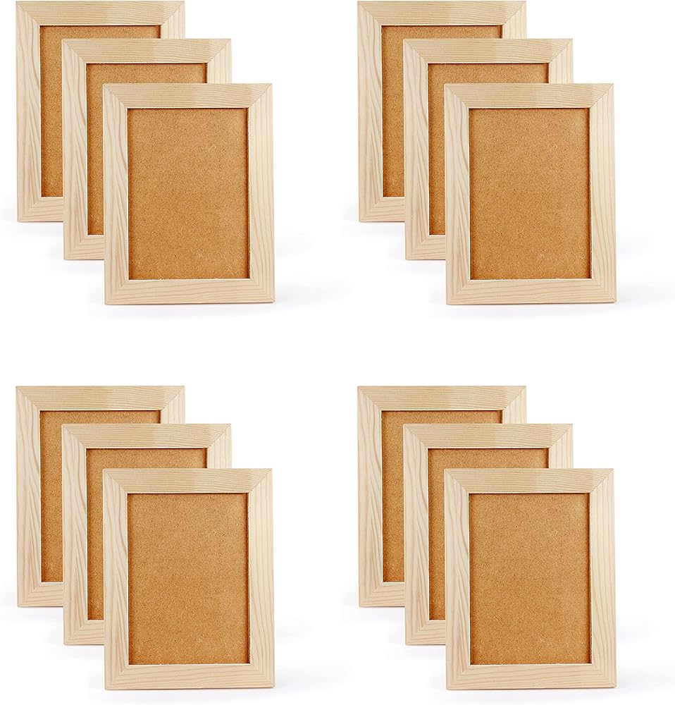 اطارات صور يدوية الصنع مكونة من 12 اطار خشبي غير مكتمل مقاس 4×6، اطارات صور من خشب الصنوبر الصلب للتزيين، لمشاريع الرسم الفنية والحرفية، (مقاس اطار 6×8 يحمل صور 6×4) للبالغين والاطفال