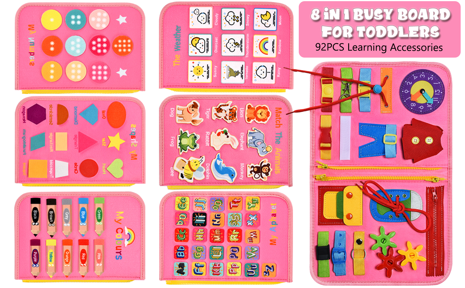 لعبة HmiL-U Busy Board Montessori لألعاب الأطفال الصغار بعمر 3 4 5 سنوات وأنشطة التعلم في مرحلة ما قبل المدرسة والألعاب التعليمية الجميلة الأساسية والمهارات الحركية والألعاب الحسية لسيارة الطائرة هدية للفتيات.