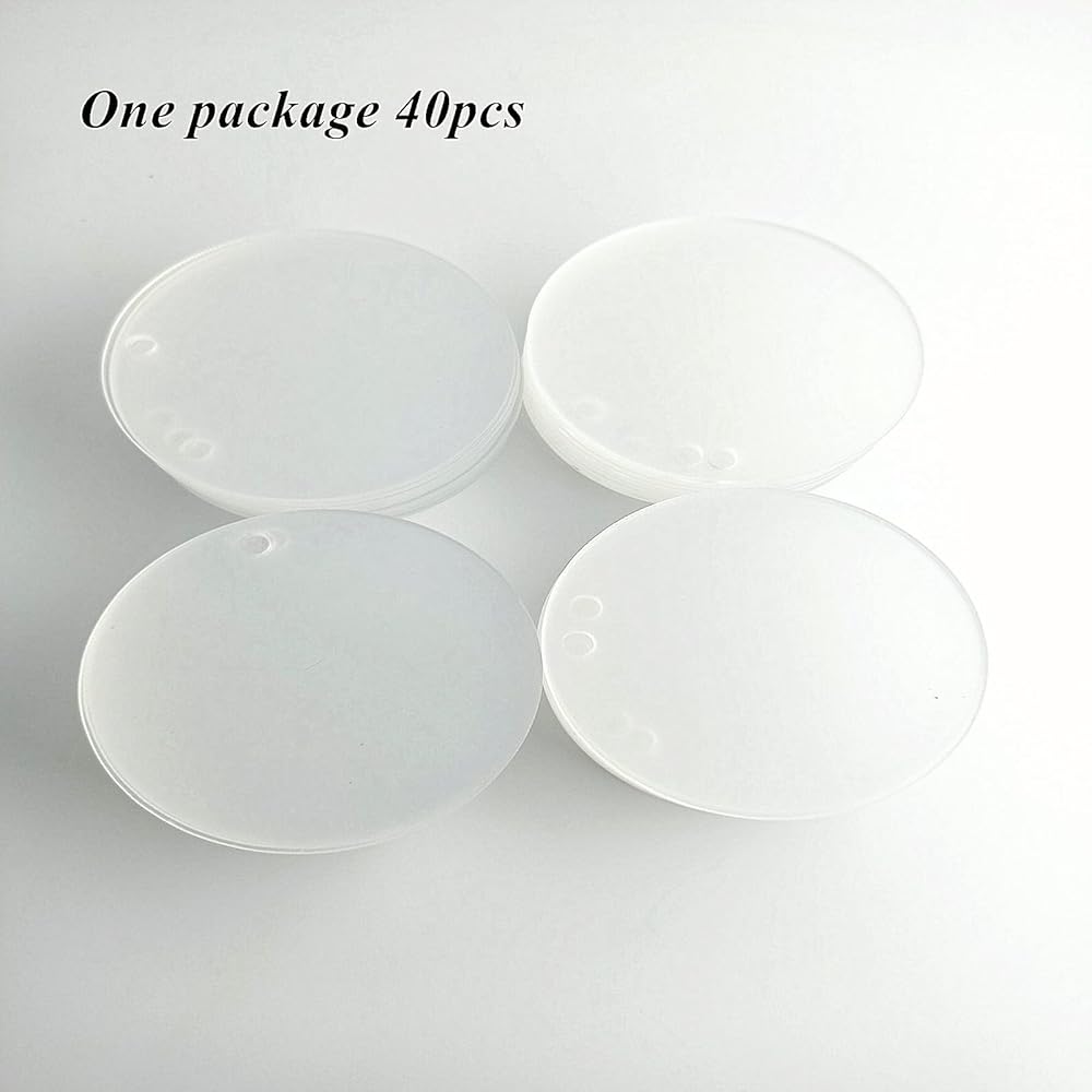 1.Packing: The diameter of the acrylic circle is 3 inch (7.62cm), the thickness 0.08'' (2mm) with a hole of 5mm, and you will get 40 pcs blank disc in one package.