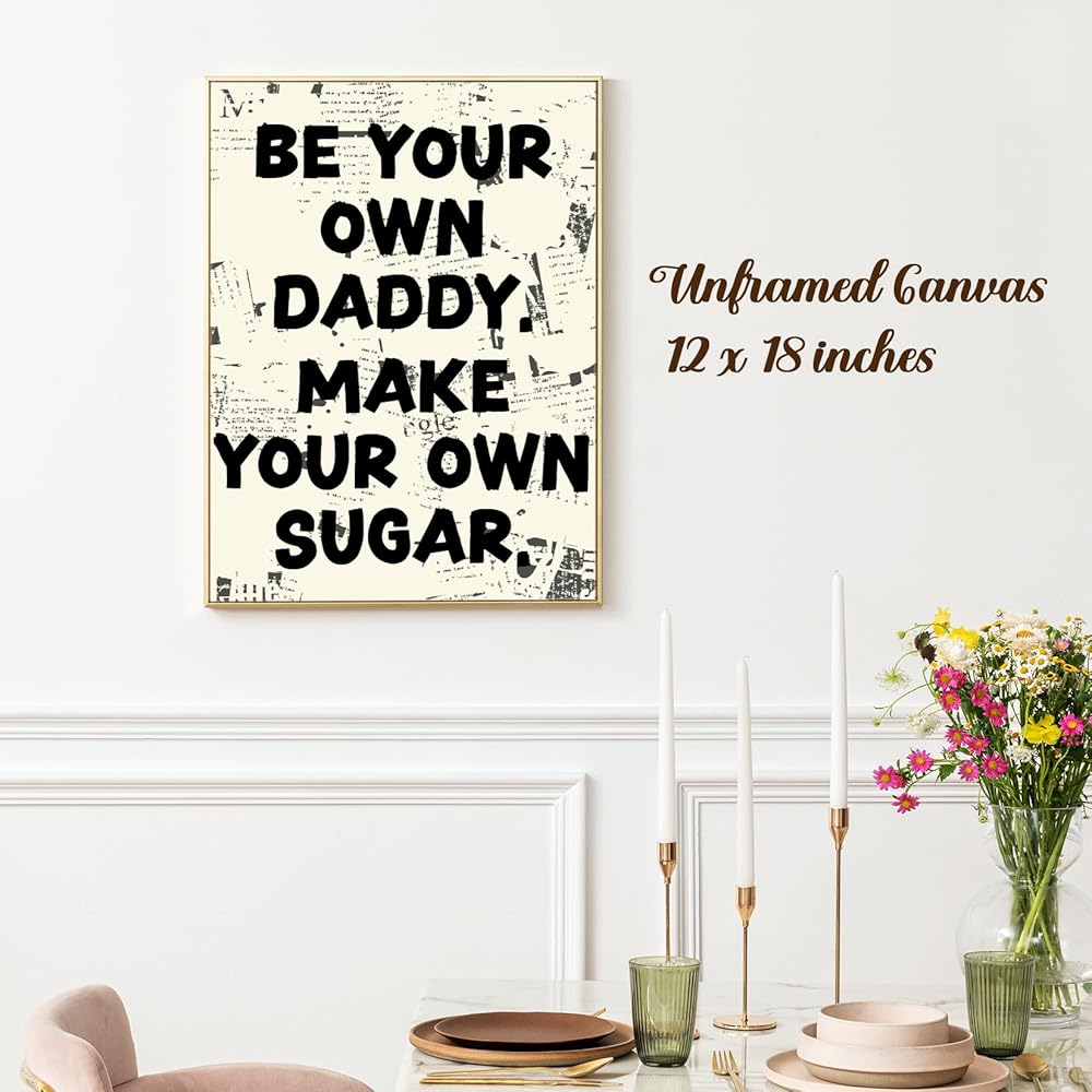 تأكيدات إيجابية الرجعية ديكور الحائط لغرفة النوم | ملصق تحفيزي Preppy للحائط | لوحة فنية جدارية من القماش تحمل اسم Be Your Own Daddy | 12 × 18 بوصة، غير مؤطرة